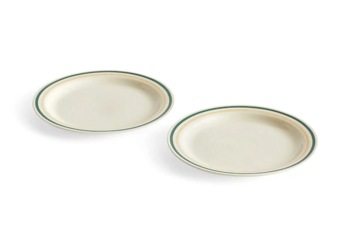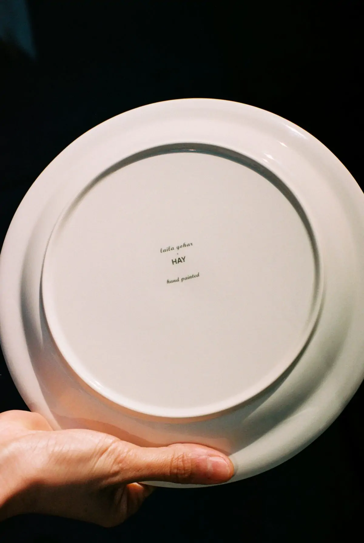 Part of a design collaboration between HAY and artist Laila Gohar that celebrates the joy of meeting family and friends over a good meal, the Sobremesa Plate is a decorative plate designed to enhance mealtime atmospheres. Hand-painted in stoneware with a beautiful contrast stripe detail, the plates are available in different sizes and stripes, and can be used alone or with other tableware from the same series.