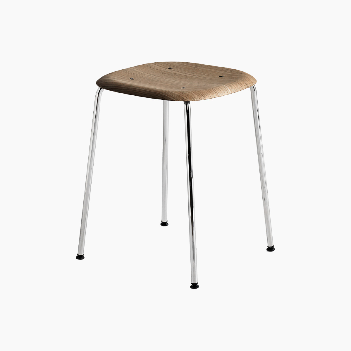 The Soft Edge Collection from HAY was designed for maximum comfort in a simple, minimalist design. The Soft Edge Stool features a uniquely molded plywood or polypropylene seat with elegantly curved edges for a distinct look. Designed to withstand heavy use, it’s available in various heights, with or without a seat back, in a range of bases, colors, and finishes to integrate into existing aesthetics. Stools with a backrest can also add an upholstered seat option for more comfort.