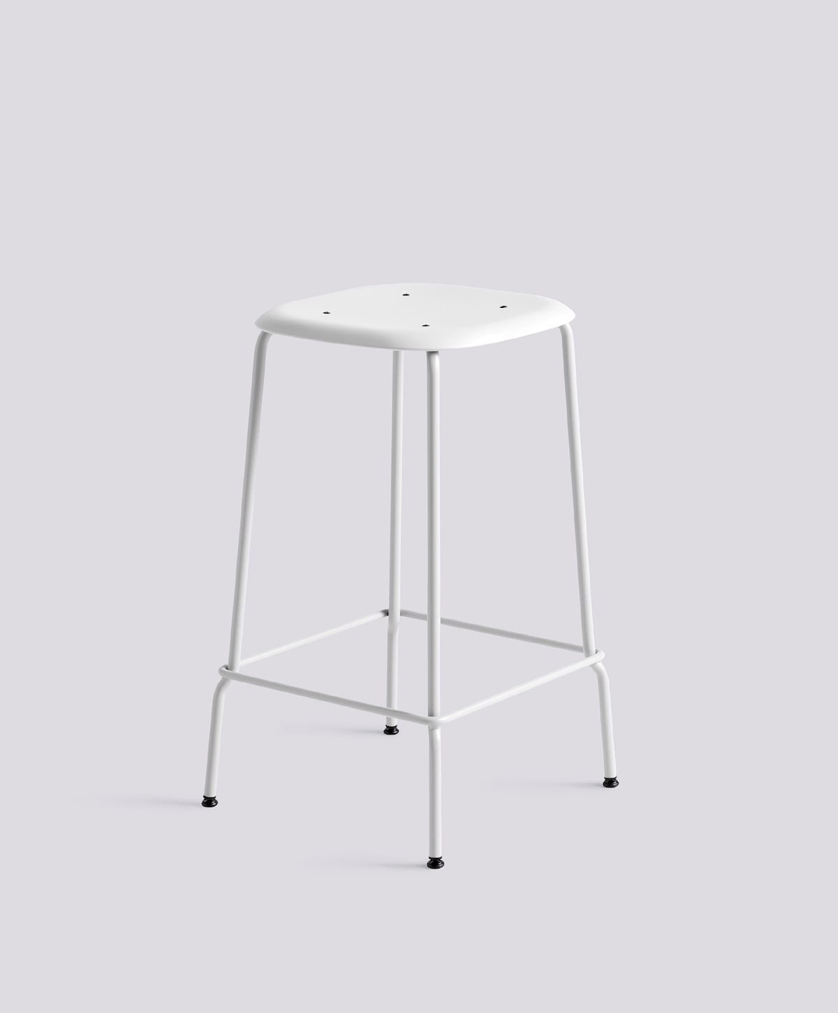 The Soft Edge Collection from HAY was designed for maximum comfort in a simple, minimalist design. The Soft Edge Stool features a uniquely molded plywood or polypropylene seat with elegantly curved edges for a distinct look. Designed to withstand heavy use, it’s available in various heights, with or without a seat back, in a range of bases, colors, and finishes to integrate into existing aesthetics. Stools with a backrest can also add an upholstered seat option for more comfort.