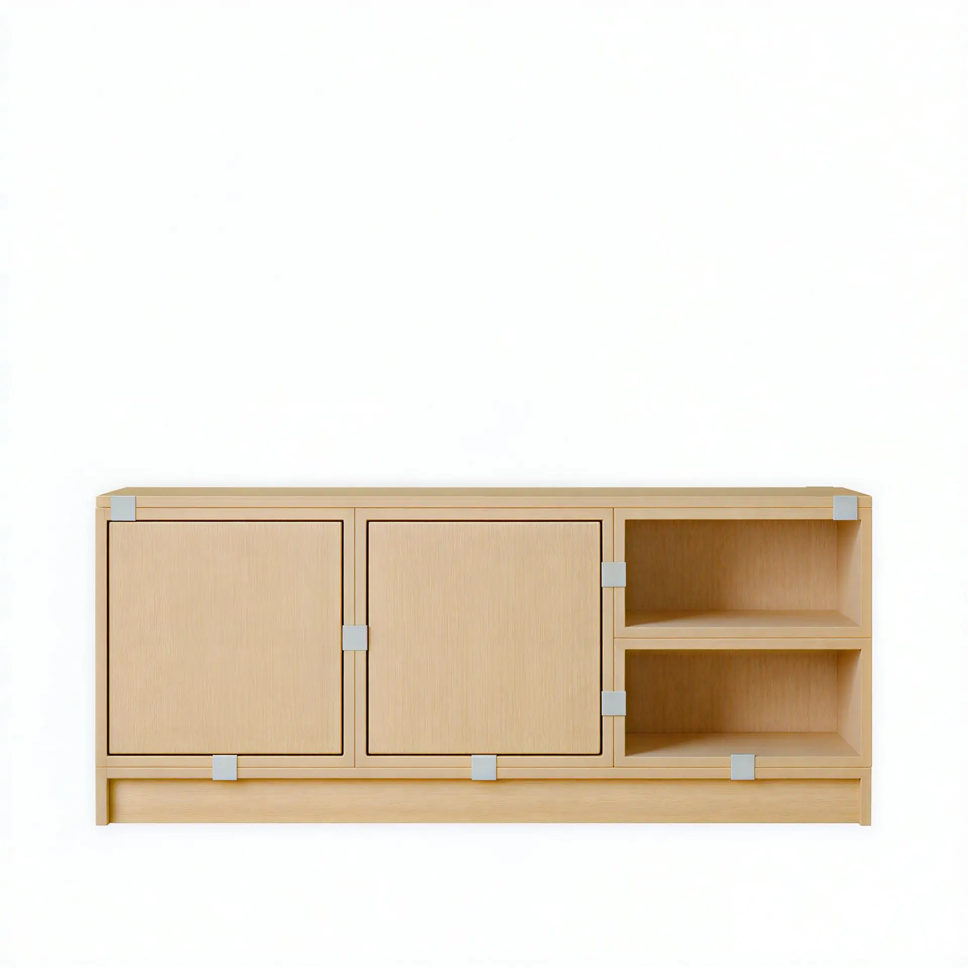 Being both versatile and functional, the Stacked Storage System can be arranged and rearranged for the exact aesthetic and functional needs of any space. Seen here is a predesigned Hallway Storage configuration that brings modern storage to any home, workplace or hospitality setting. All modules with backboard can be mounted directly onto the wall.