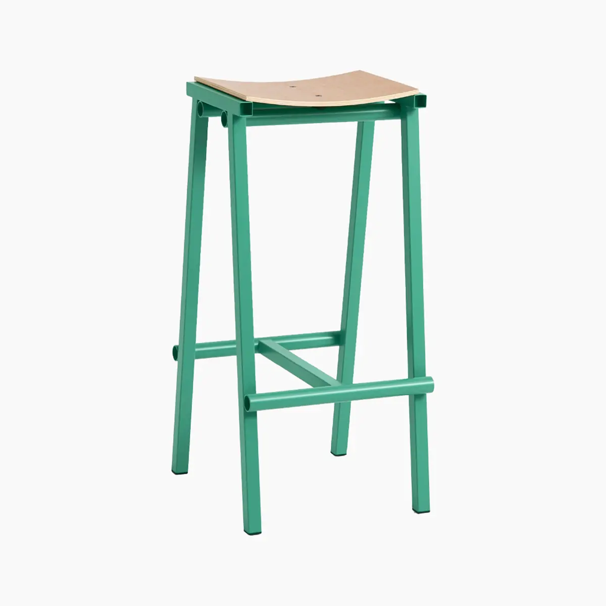 Designed for HAY by Marc Morro, Taburete 8 Bar Stool signifies the start of a new and exciting collaboration with the Spanish furniture designer. Named ‘8’ after the number of prototypes made until the final version was perfected, the resulting stool exudes an honesty and radical aesthetic characteristic of Morro’s direct approach to design. Both the curved plywood seat and steel tubing frame are clearly presented, with the different components enhanced by their raw simplicity and bold use of colour. The stool’s robust construction combined with its minimalistic expression make it easy to integrate into a wide variety of environments.