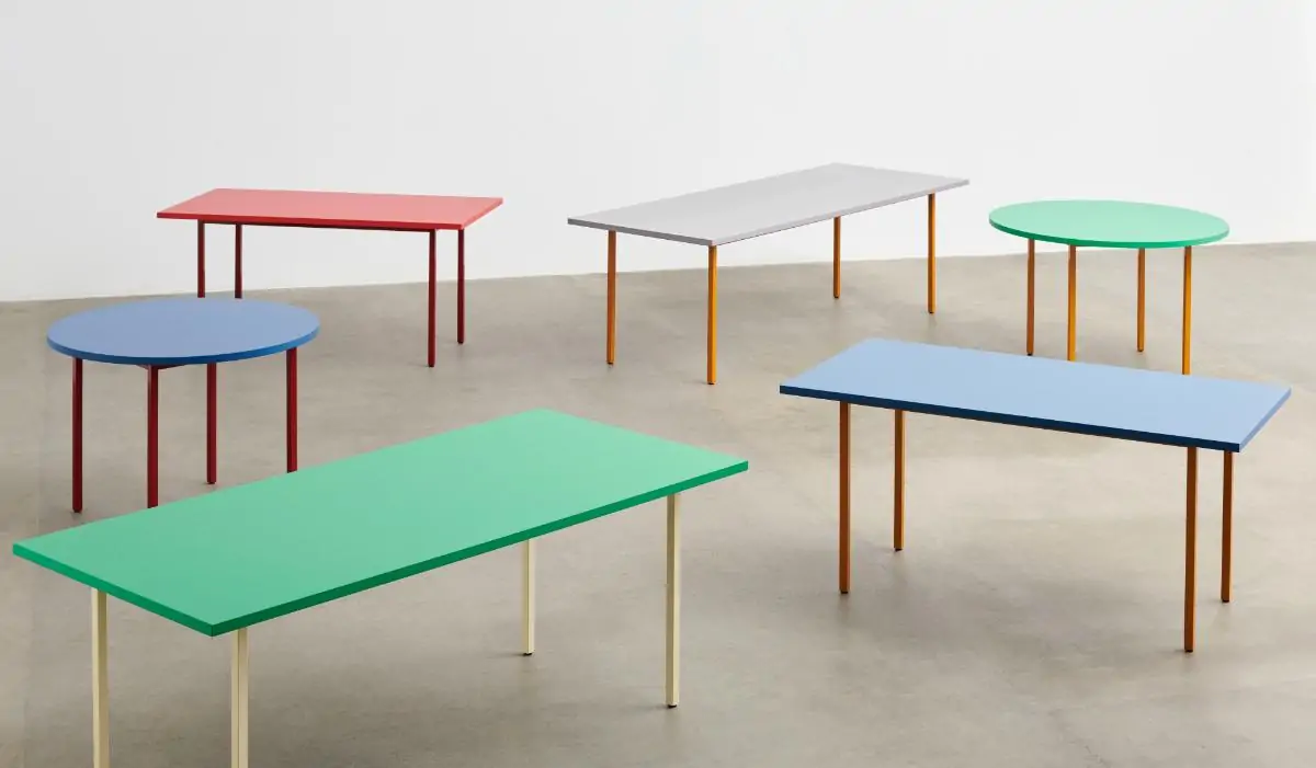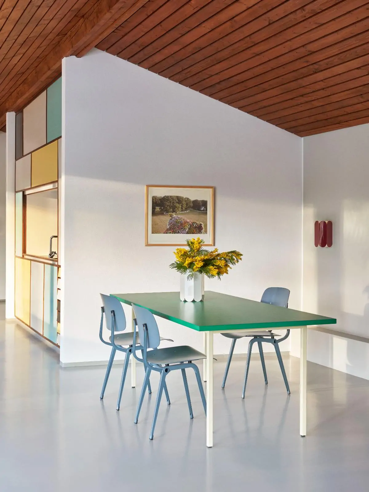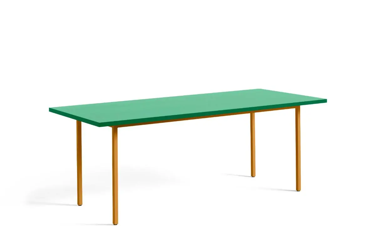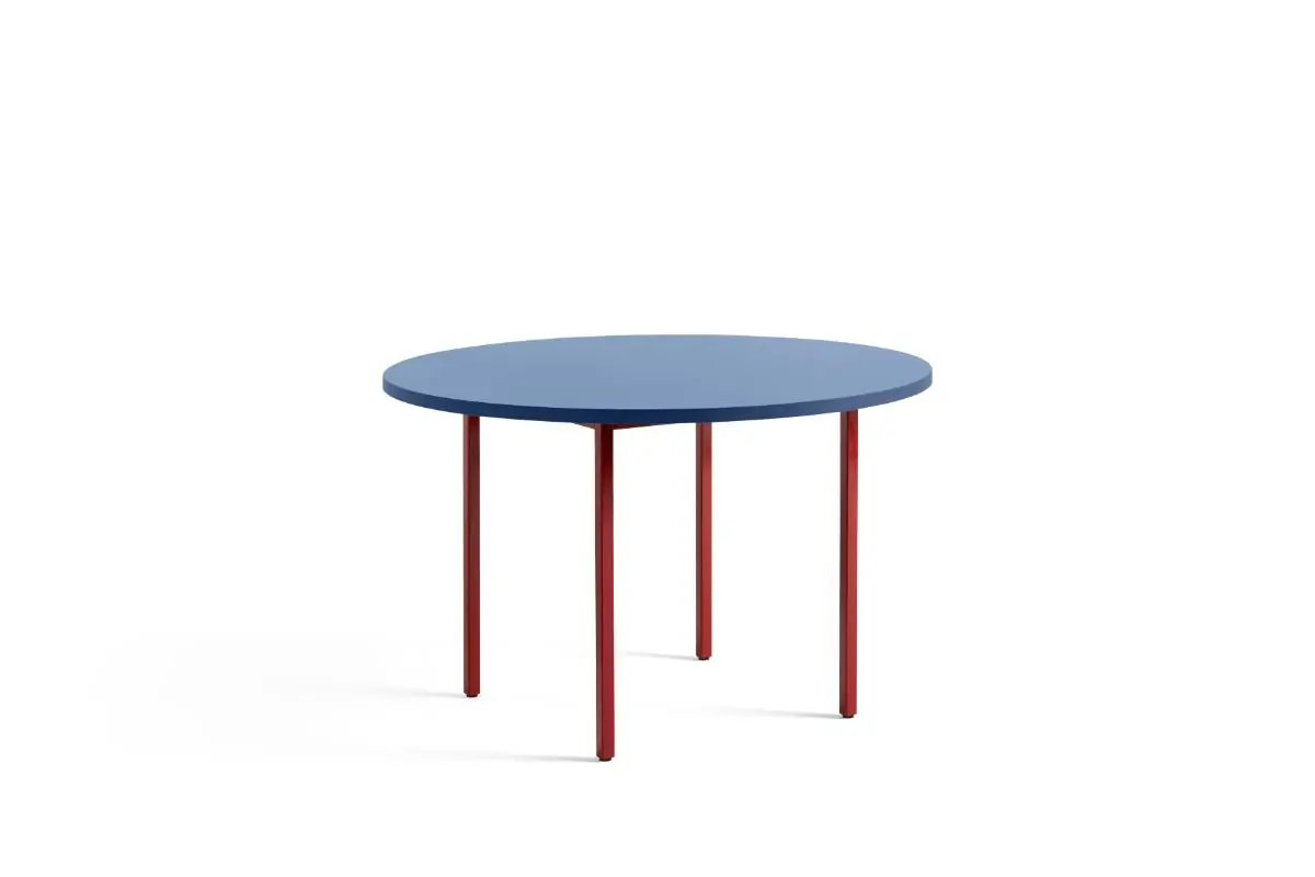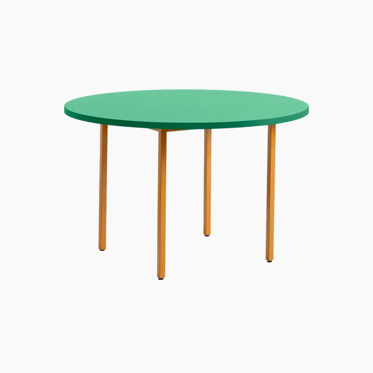 Materials used at their best, the Two-Colour table series is inspired by the contrasts and similarities in the materials used. Featuring steel tube legs for optimal strength and stability, the table surface is crafted in organic coloured Valchromat® – a unique kind of robust MDF material that is FSC-certified and features a water-based lacquer. Both components are united by the even thickness, creating a uniform silhouette that is disrupted by the contrasting elements of colour. Two-Colour is available in different shapes, sizes, and colour combinations, all offering a distinct personality that makes it ideal for a wide variety of environments, from cafés and restaurants to homes and office spaces.
