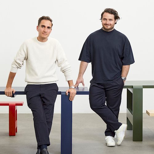 Hannes & Fritz is a design collaboration between German-Swiss design duo Johannes Breuer and Fritz Gräber, who met at ECAL in Lausanne, Switzerland. What started as a friendship developed into a spontaneous design collaboration with the construction of a bench at a dinner party, and resulted in their successful partnership. Both designers bring their unique skillset to the collaboration, with Fritz favouring a more dynamic, expressive design language, whilst Hannes takes a more linear approach. The duo design for a number of international furniture companies, often starting their projects by exploring existing archetypal forms, before defining them in a more contemporary context. For HAY, Hannes & Fritz have designed the Weekday Collection.