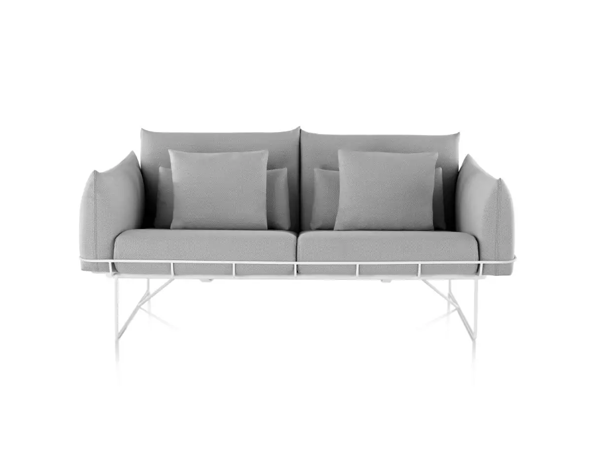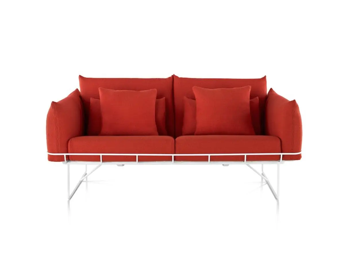 Visually speaking of softness and volume contained within a formal frame, the Wireframe Sofa Group exemplifies a recurring theme for Sam Hecht and Kim Colin: contrasting tension. The design’s external structure is shaped from steel wire—a material long used in classic Herman Miller designs for its strength and durability. Held within the frame are contoured cushions, which find added comfort from a suspension technology first developed by Herman Miller for the healthcare industry.