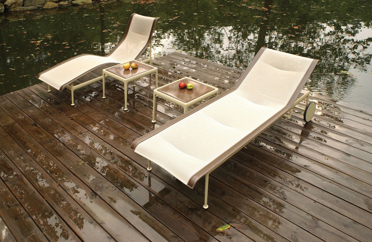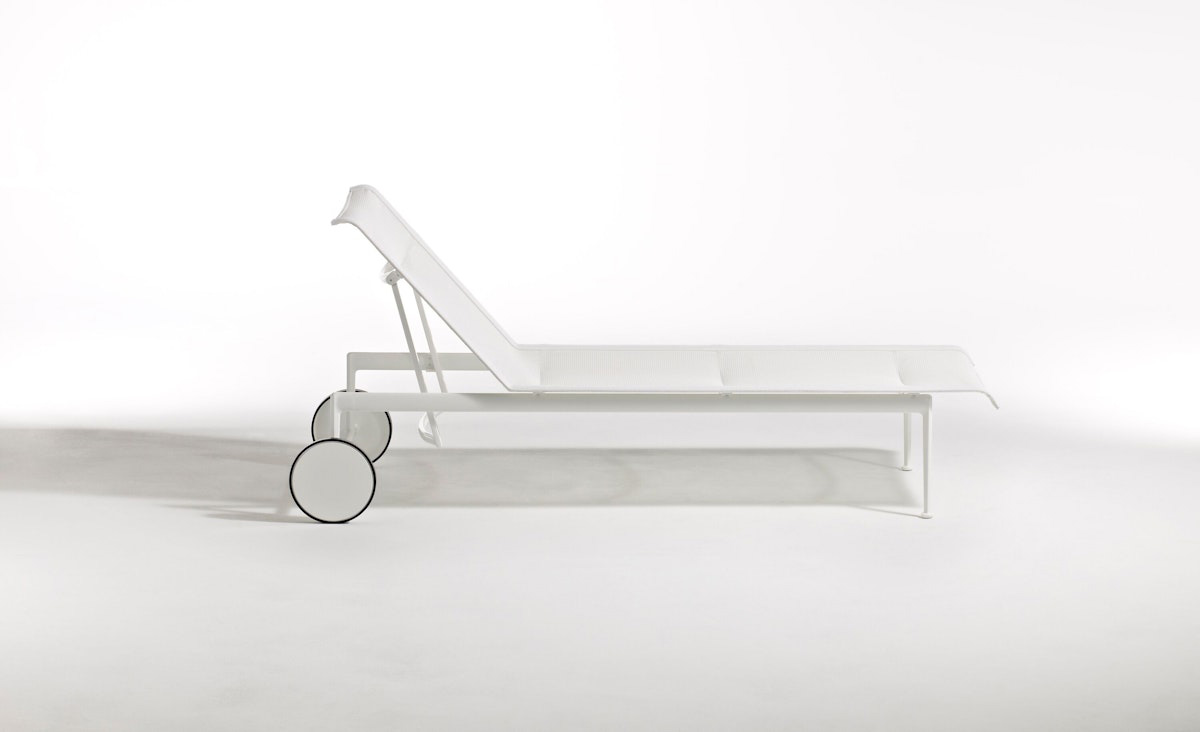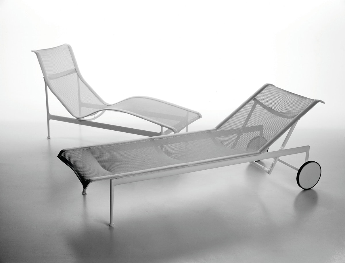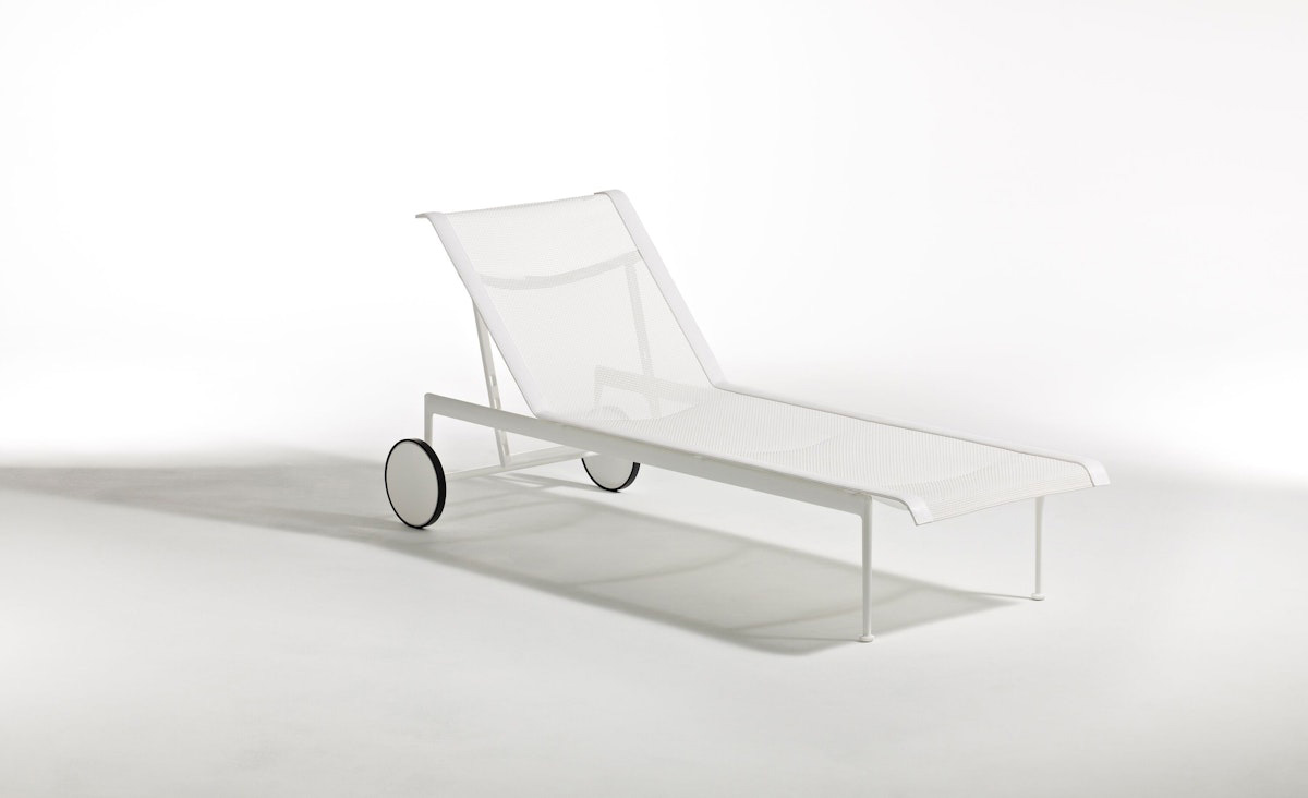The 1966 Collection from Knoll was originally designed by Richard Schultz at the request of Florence Knoll for the outdoor area of her seaside home. The 1966 Adjustable Chaise is designed with woven, vinyl coated polyester mesh, stainless steel supports, and wheels and glides for smooth transportation. It adjusts from fully flat to four different recline settings to lock in your maximum comfort.