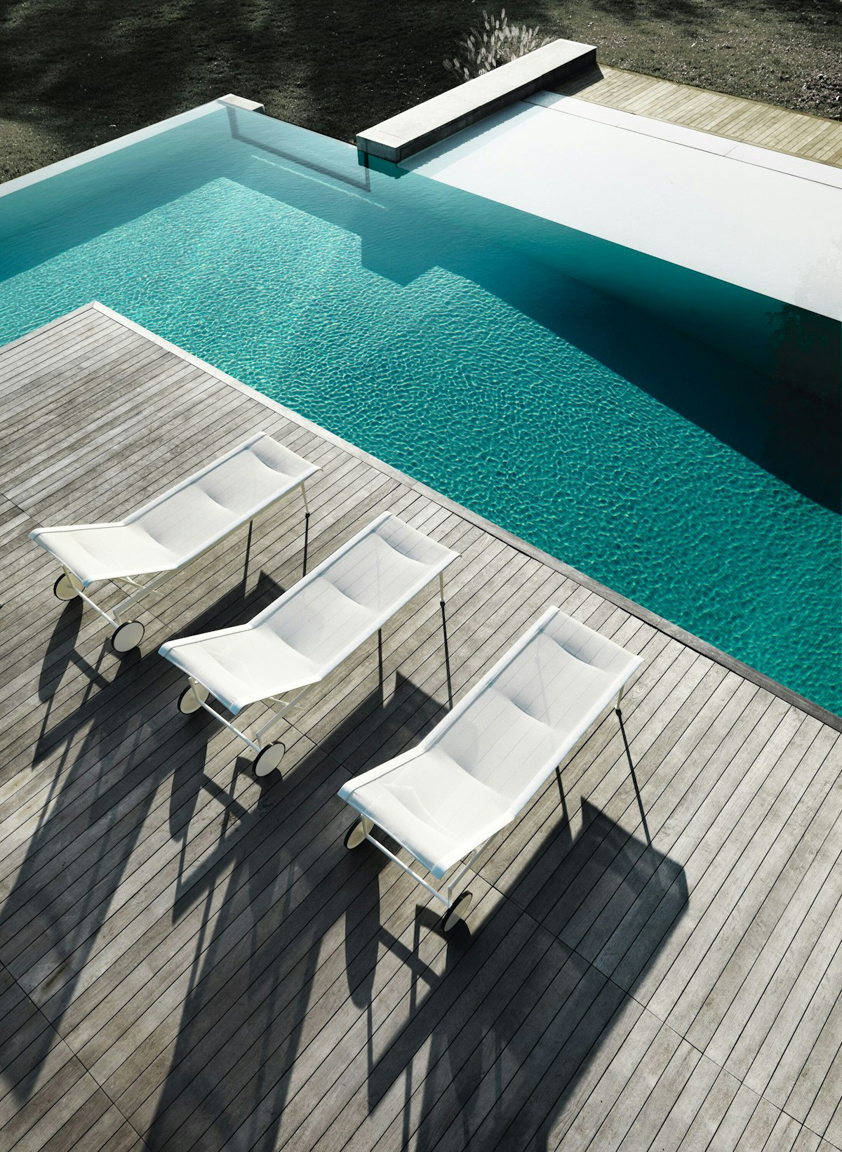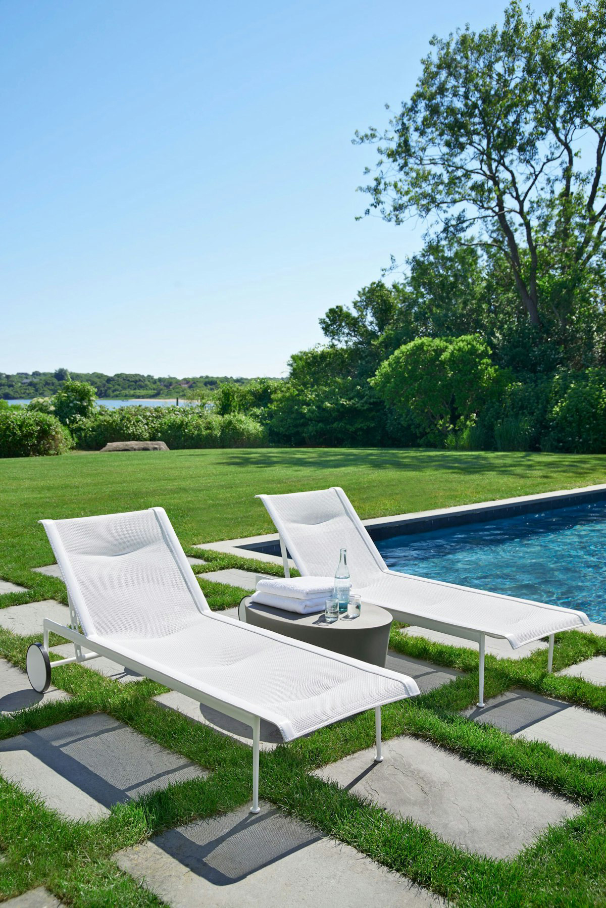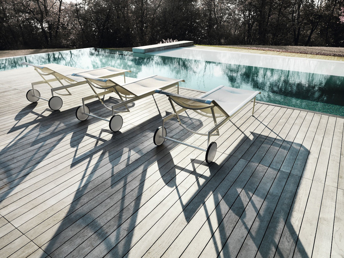 The 1966 Collection from Knoll was originally designed by Richard Schultz at the request of Florence Knoll for the outdoor area of her seaside home. The 1966 Adjustable Chaise is designed with woven, vinyl coated polyester mesh, stainless steel supports, and wheels and glides for smooth transportation. It adjusts from fully flat to four different recline settings to lock in your maximum comfort.