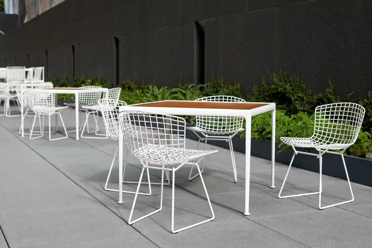 The 1966 Collection from Knoll was originally designed by Richard Schultz at the request of Florence Knoll for the outdoor area of her seaside home. The 1966 Dining Table is a minimalist table available in standard, bar-, or counter-height with a spacious square or rectangular surface and a sturdy, steel frame. Glides ensure easy mobility, while a variety of colors and materials allow you to customize to your space.