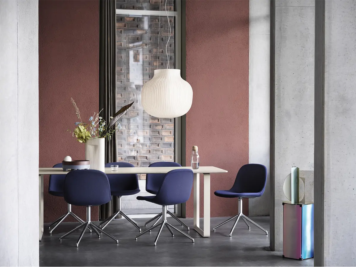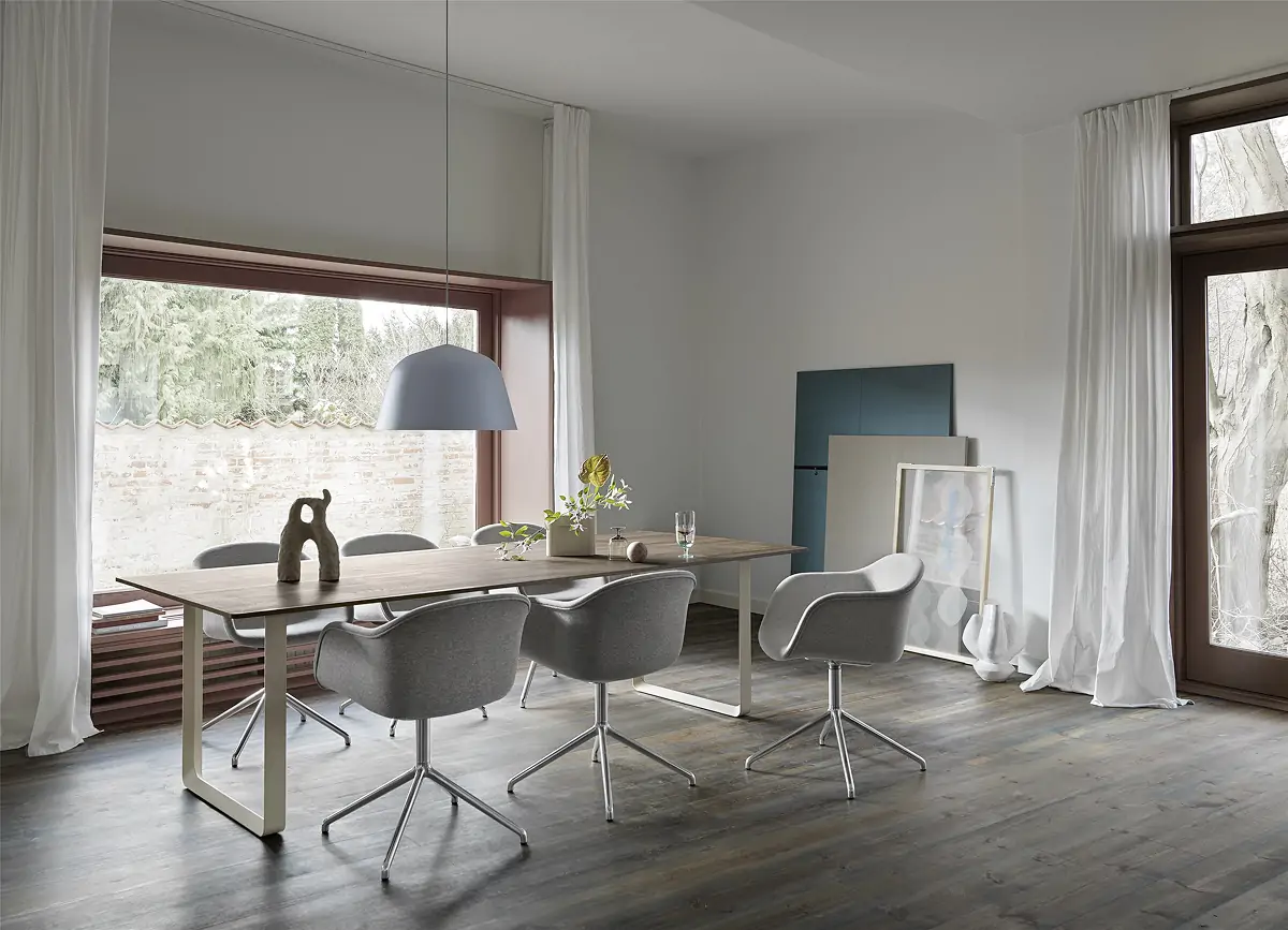 The 70/70 Table from Muuto is a durable, modern table with understated details. Beveled edges add elegance to the tabletop, while the powder-coated aluminum base introduces a modern touch. Available in a variety of sizes and finishes, this minimalist table fits equally well in conference rooms or dining spaces.