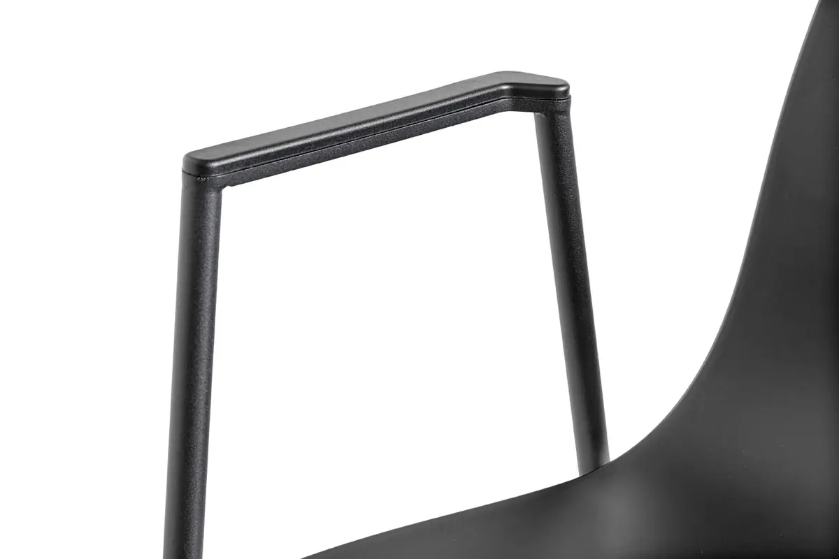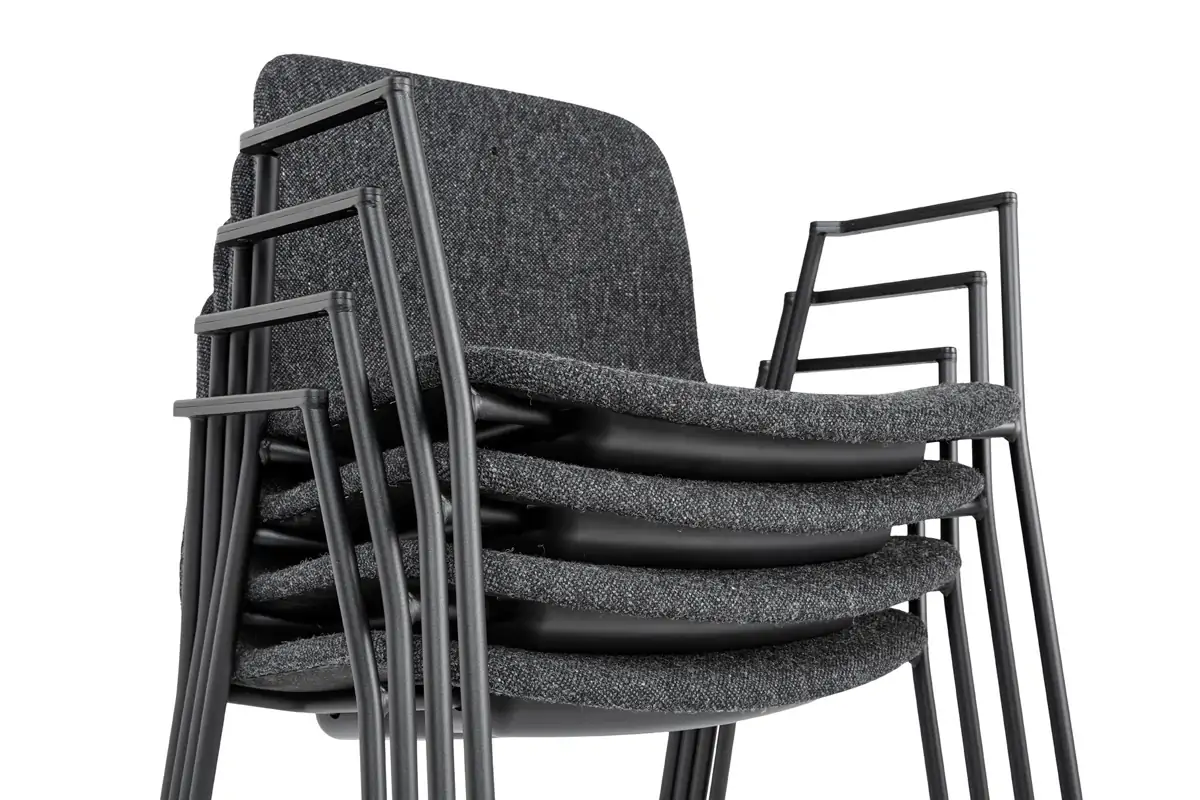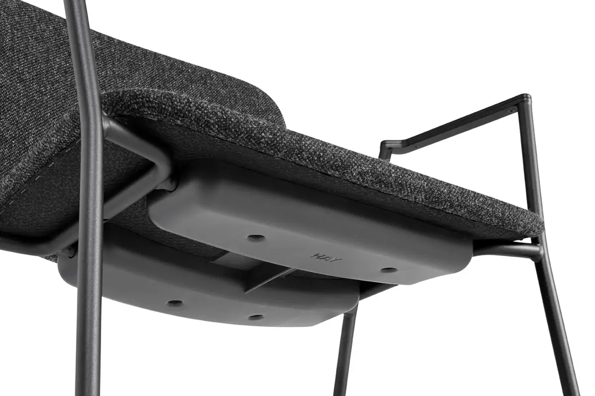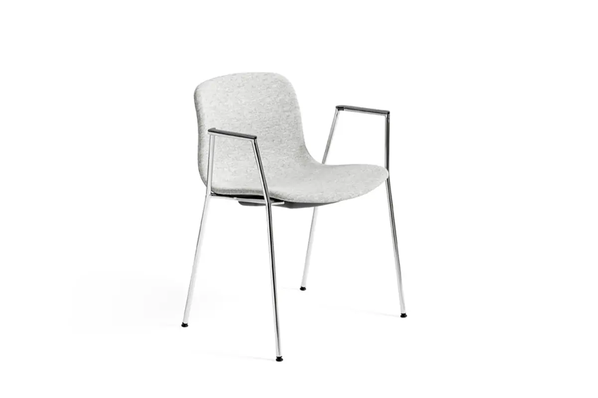 Offering a slightly more formal expression than other designs in the collection, About A Chair AAC 19 features slim, elegant legs and armrests that frame the seat shell. The chair’s slightly rounded upholstered seat offers excellent comfort, while the open front conveys a welcoming expression. The legs are available in chrome and powder coated finishes, with the post-consumer recycled plastic shell offered in multiple upholstery options. Its refined silhouette and multitude of design combinations make it ideal for using in conferences, dining rooms, or home office environments.