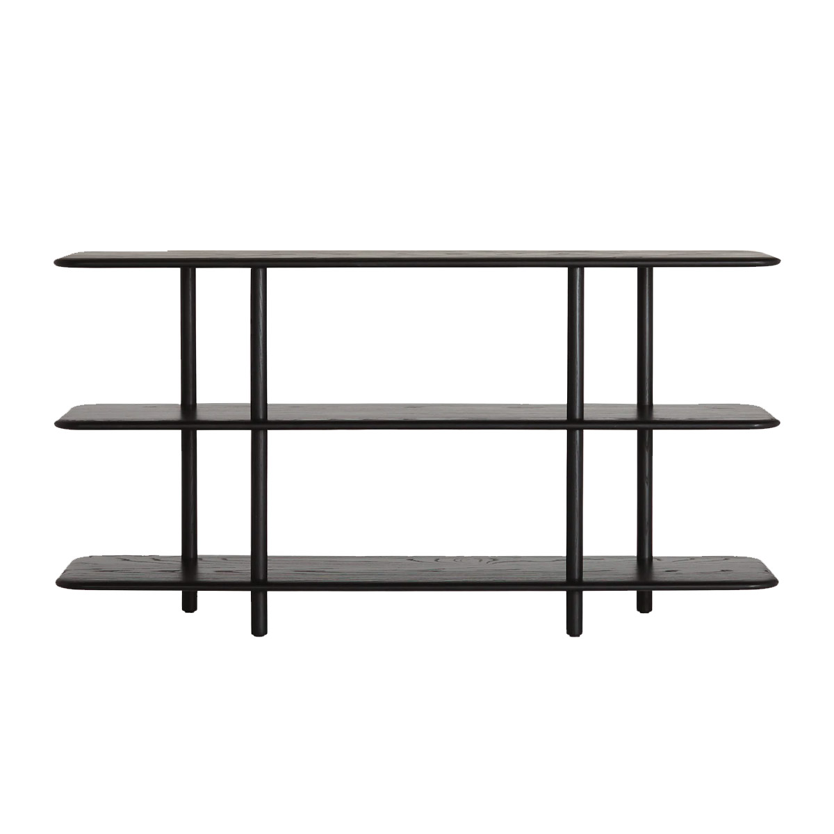 Aero is finished in a hand-applied pigment that keeps the wood grain visible. On the High Shelving, the bottom shelves are heavily weighted for stability.