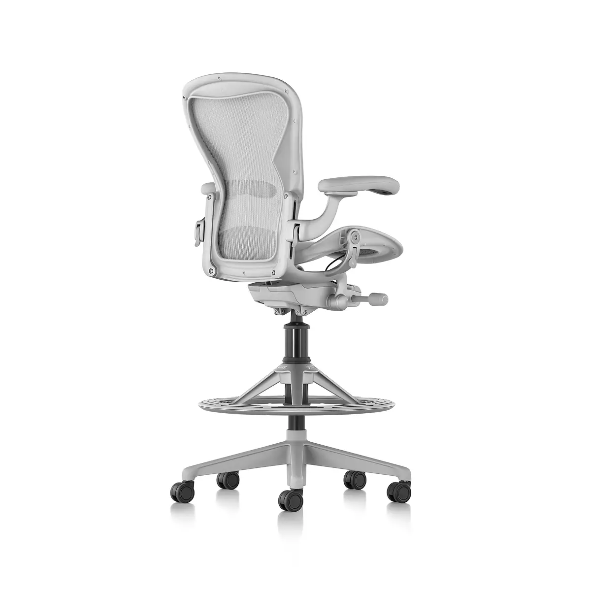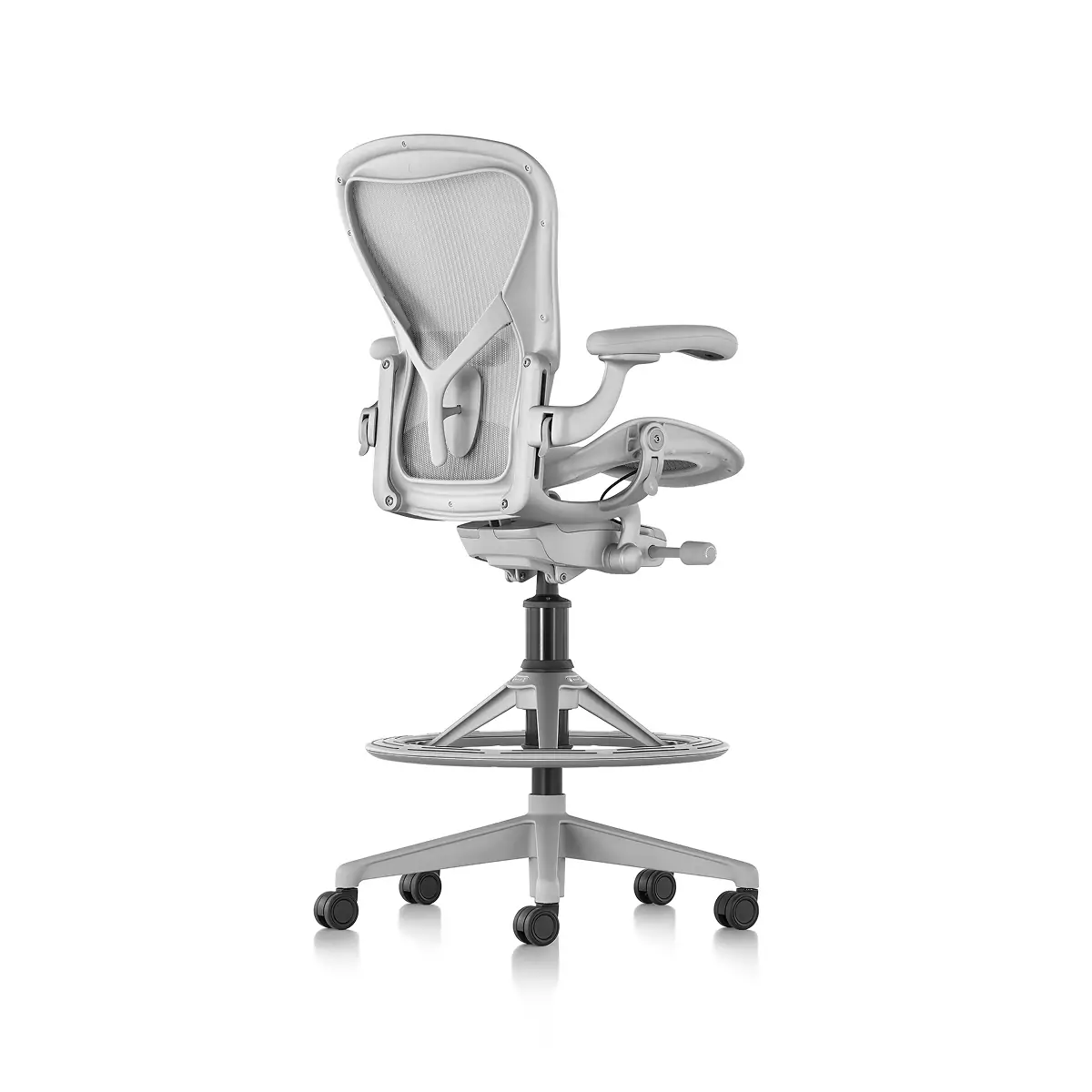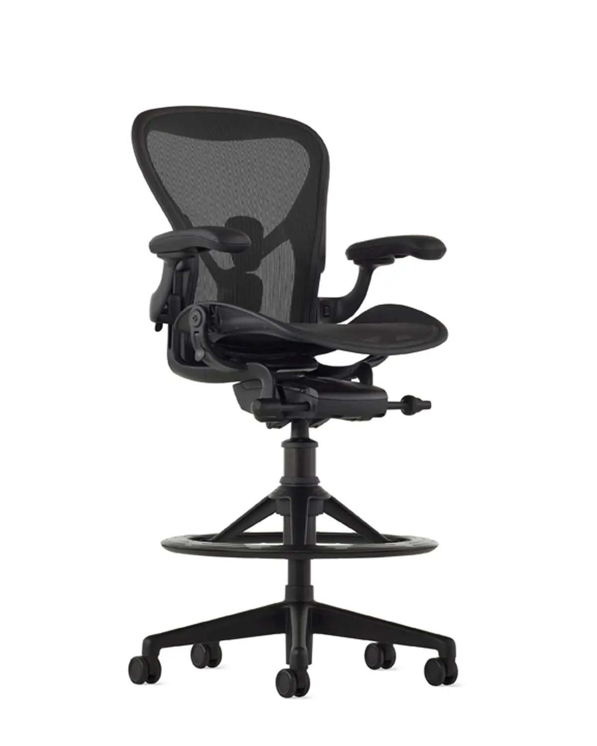 The Aeron Stool takes our benchmark for ergonomic seating to new heights, pairing with higher work surfaces, tables and countertops. Since its launch, Herman Miller has learned a lot about how to best support people – and their postures – during the workday. Aeron offers smarter weight distribution through 8Z Pellicle, an adjustable PostureFit SL for total spinal support, and balanced recline and natural movement thanks to Harmonic 2 Tilt.