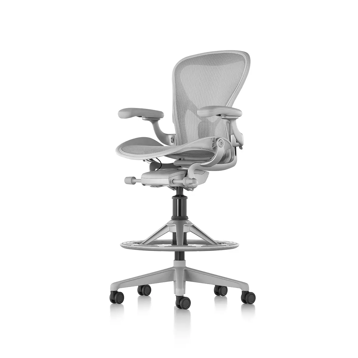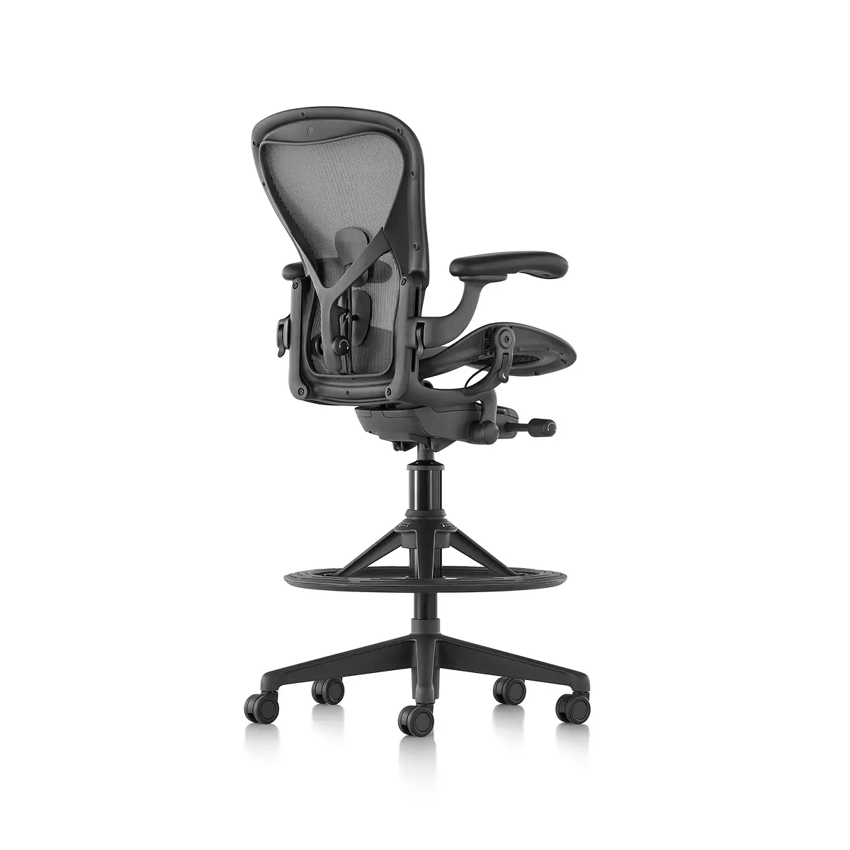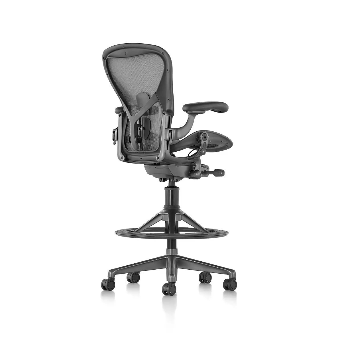 The Aeron Stool takes our benchmark for ergonomic seating to new heights, pairing with higher work surfaces, tables and countertops. Since its launch, Herman Miller has learned a lot about how to best support people – and their postures – during the workday. Aeron offers smarter weight distribution through 8Z Pellicle, an adjustable PostureFit SL for total spinal support, and balanced recline and natural movement thanks to Harmonic 2 Tilt.