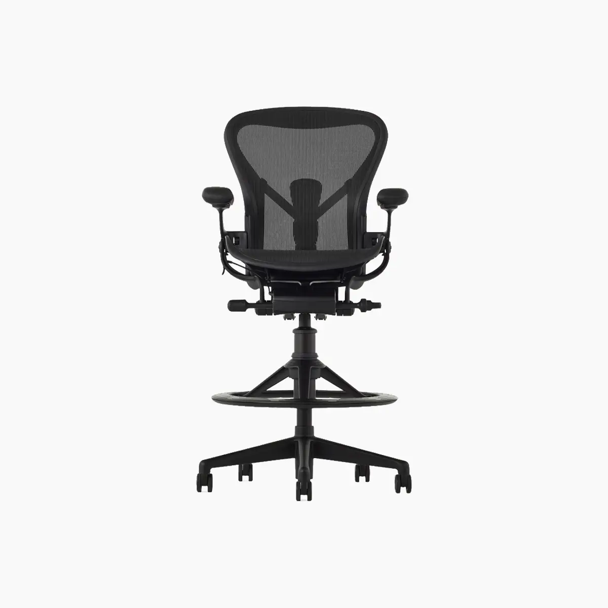 The Aeron Stool takes our benchmark for ergonomic seating to new heights, pairing with higher work surfaces, tables and countertops. Since its launch, Herman Miller has learned a lot about how to best support people – and their postures – during the workday. Aeron offers smarter weight distribution through 8Z Pellicle, an adjustable PostureFit SL for total spinal support, and balanced recline and natural movement thanks to Harmonic 2 Tilt.