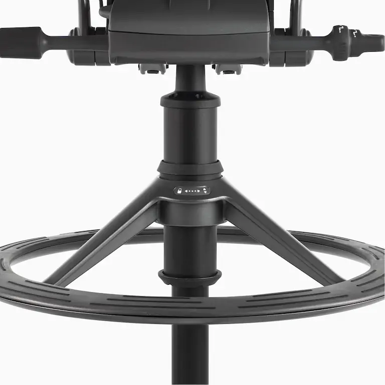 Designers Bill Stumpf and Don Chadwick kept innovation at the core of the Aeron Stool from Herman Miller. Its revolutionary ergonomic support, breathable comfort, and adjustable arms, seat height, depth, and recline make it effortless for everyone to benefit from optimal seating posture. Aeron’s 8Z Pellicle suspension material features eight separate zones of tension to quietly support your body’s pressure points for all-day ergonomic support and comfort while working on higher work surfaces and tabletops. The footrest platform is three times wider than the typical footring and was designed to provide a comfortable area to support your feet that also moves when you adjust your seat. Made in part from recycled ocean-bound plastic, it’s an eco-friendly choice, too.