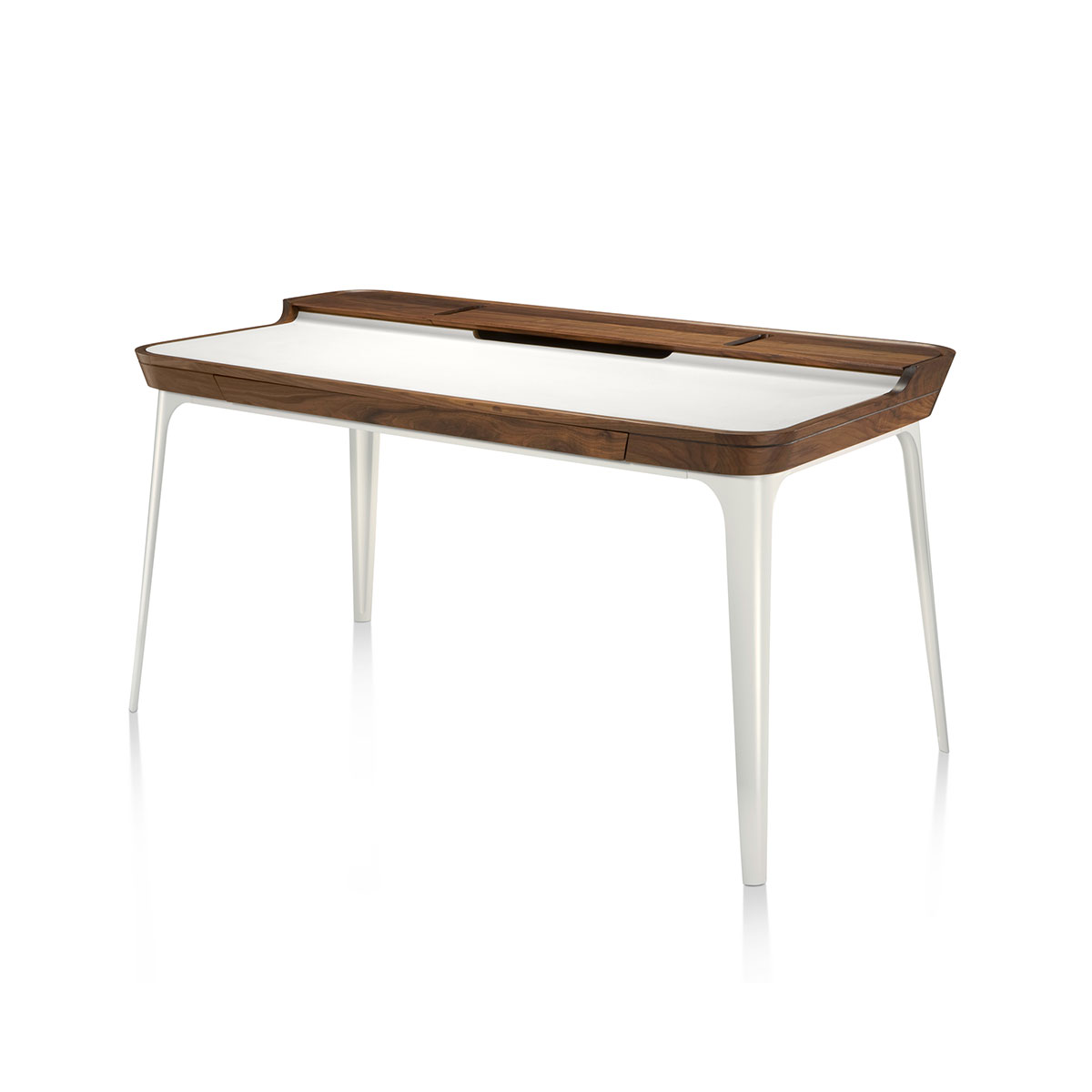 From its elegant combination of wood and aluminum, to its thoughtfully crafted details such as corklined drawers, Airia combines beauty and functionality. Designers Ayako Takase and Cutter Hutton were motivated to design an “intelligent desk that acknowledged technology and the stuff that we accumulate when working, but do it in a subtle, integrated, and intuitive manner.”