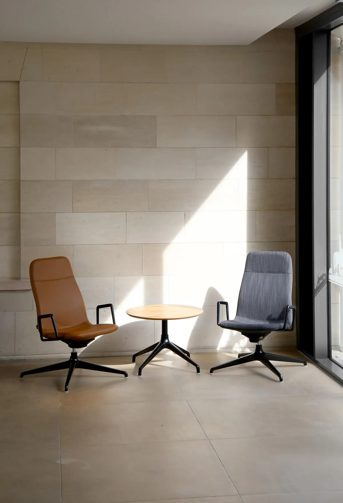 Set on a solid die-cast aluminium 4-star base, Ali comes in 16 standard powder-coated colours and other durable finishes, including oak and walnut, that will keep their looks even in the most testing, high use settings.