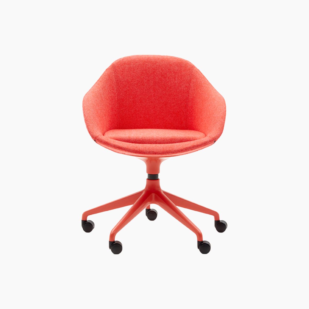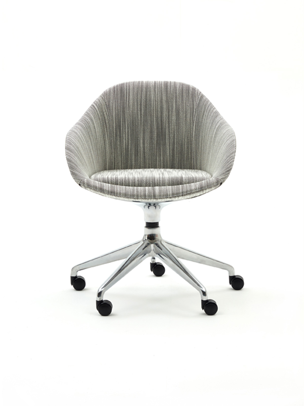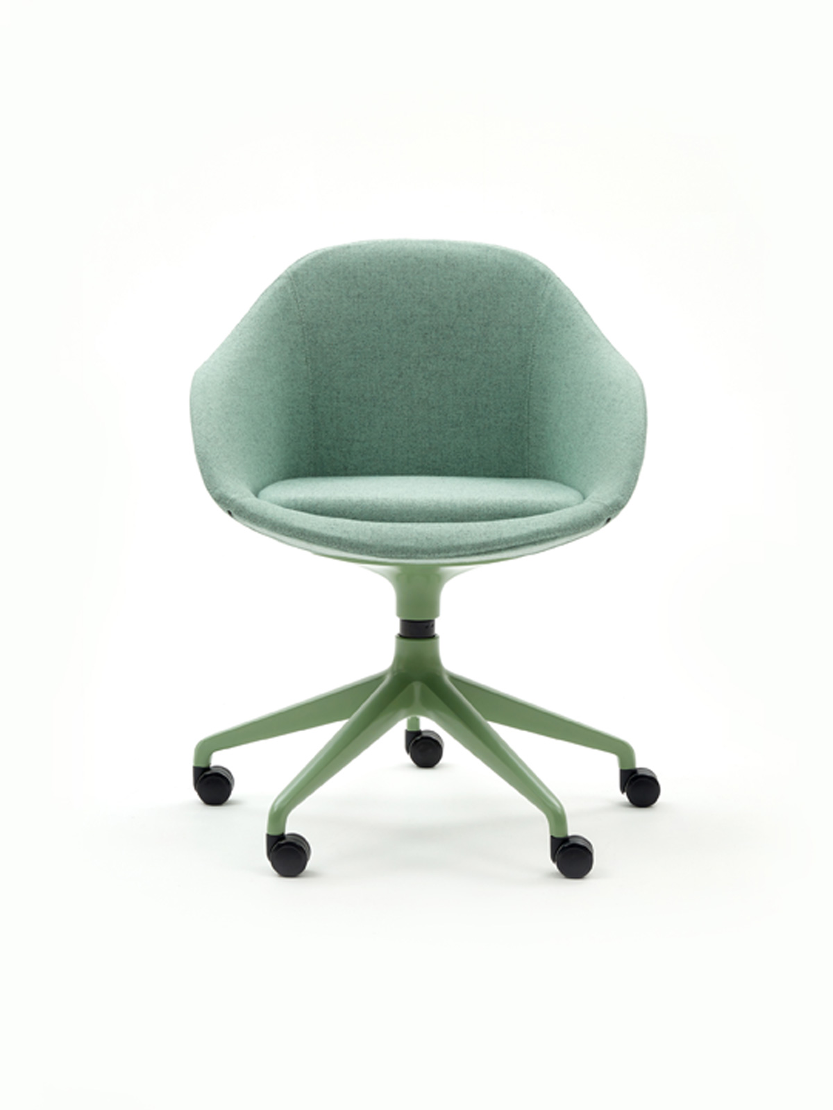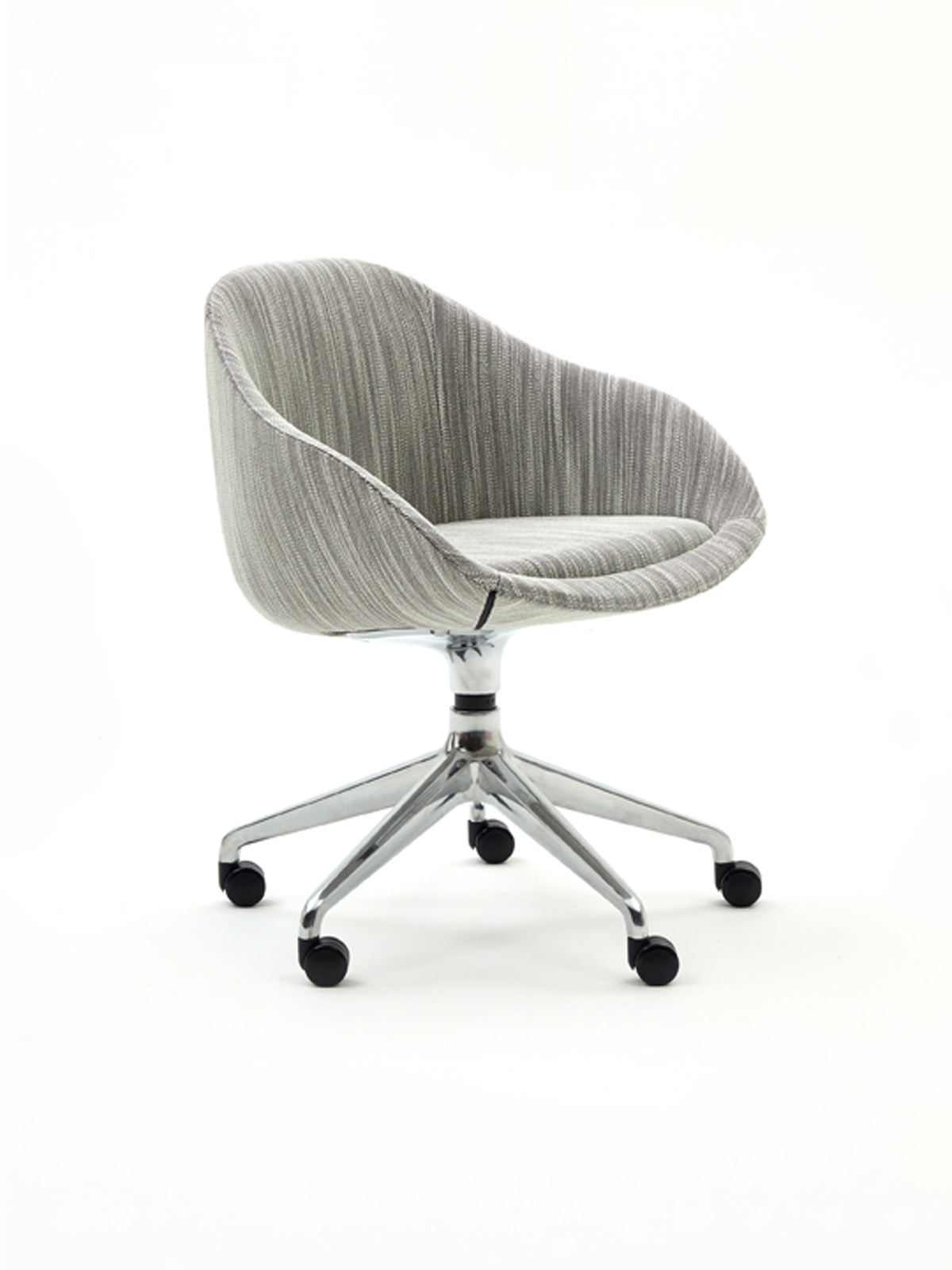 Fitted with a 5-star swivel base and casters, the Always Chair’s organic form is ready for quick bursts of work. Constructed using engineered foam over a steel core, the chair achieves a meticulously proportioned shape without compromising support, comfort or durability. Available in a wide range of upholstery fabrics, including two-tone options.