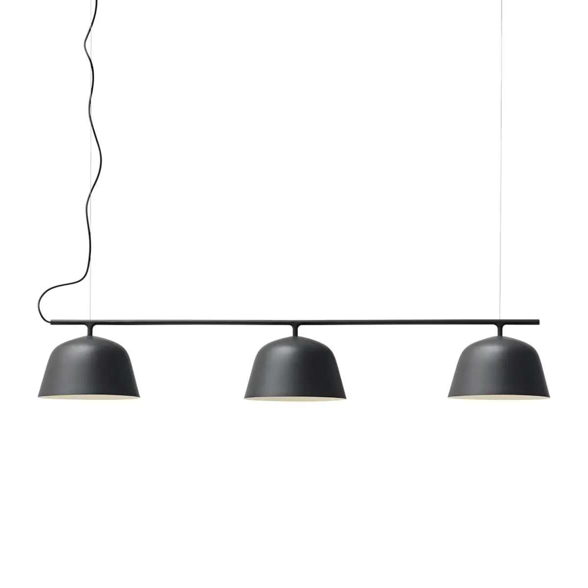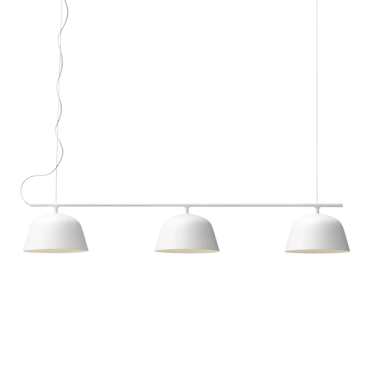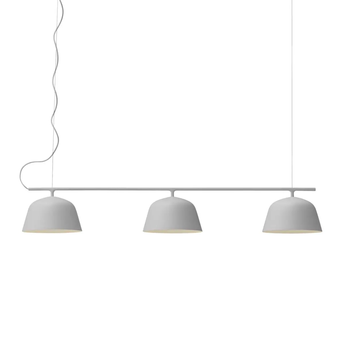 The Ambit Rail Lamp is characterized by its simple lines and elegant shapes, bringing a refined light to any space. With its shades being made of handspun aluminum, the Ambit Rail Lamp features white interiors that provide a contrast to its outside shade while enhancing the light emitted into the room of any home, office or hospitality space.