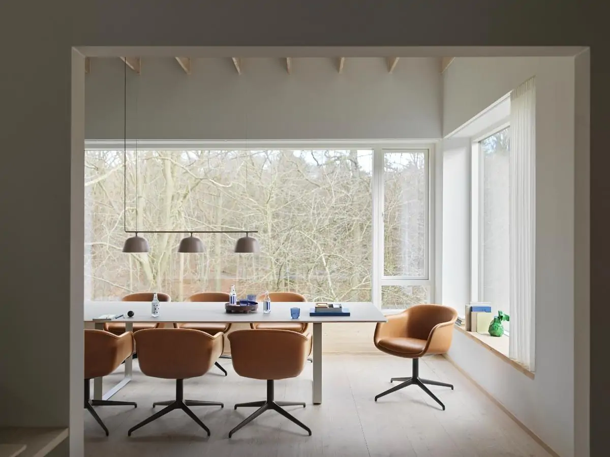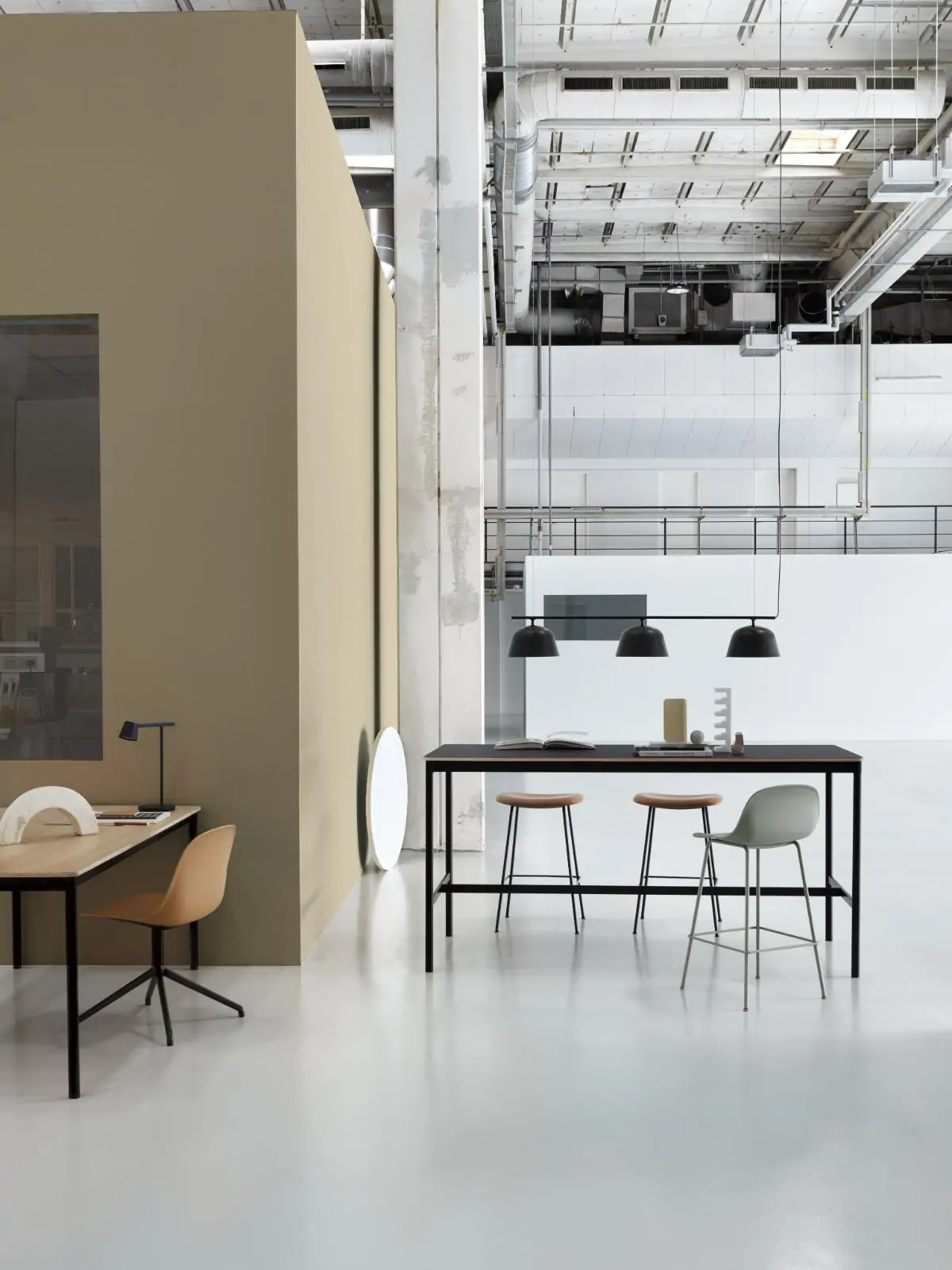 The hand spun aluminum Ambit Lamp Family is the result of explorations of form and proportions, leading to a unique dynamic between linear and rounded shapes, giving the lamp its unique outline.
