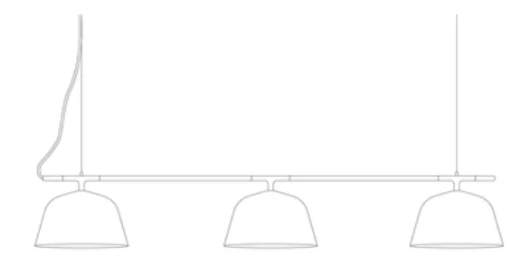 The Ambit Rail Lamp is characterized by its simple lines and elegant shapes, bringing a refined light to any space. With its shades being made of handspun aluminum, the Ambit Rail Lamp features white interiors that provide a contrast to its outside shade while enhancing the light emitted into the room of any home, office or hospitality space.