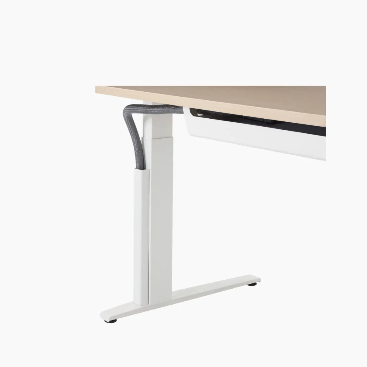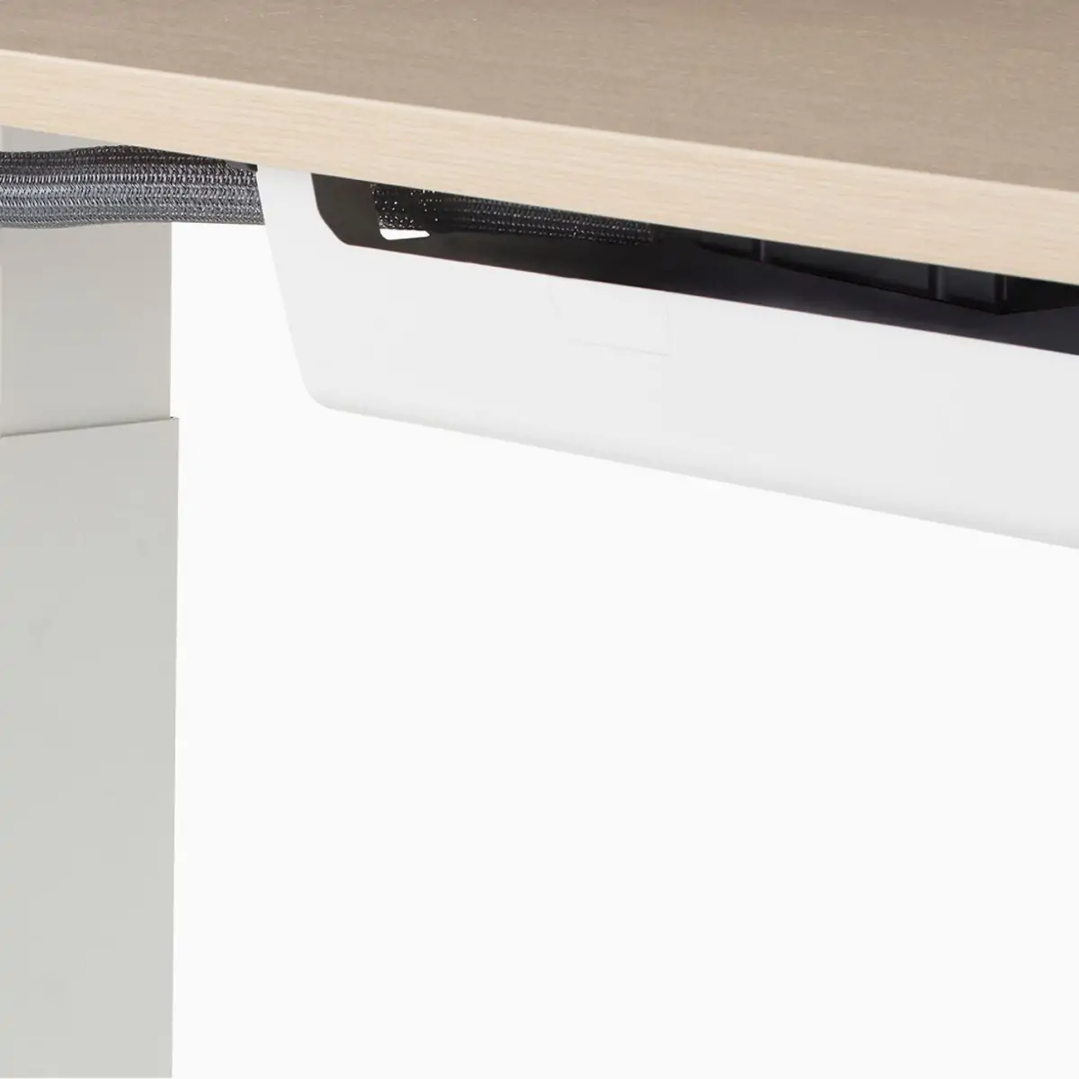 Avoid loose-hanging cables with Ambit’s power cord organizer. Ambit helps manage wire clutter with a cable trough that secures and cleanly routes wires up the table’s leg. This not only keeps wires safe and in good working condition, but it also makes for one less tripping hazard.