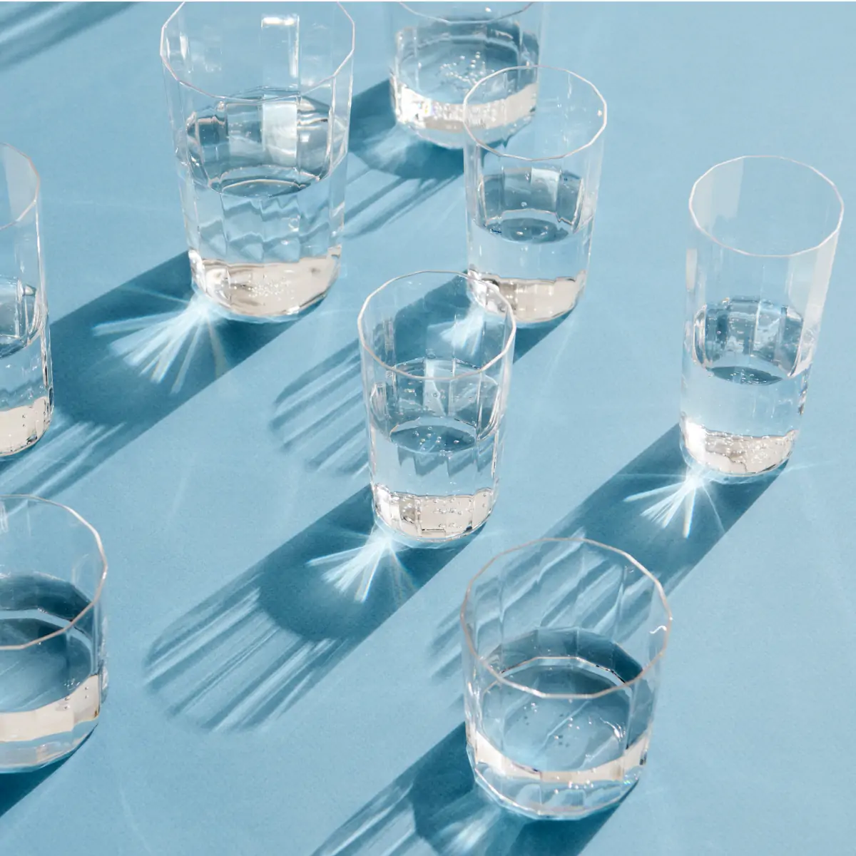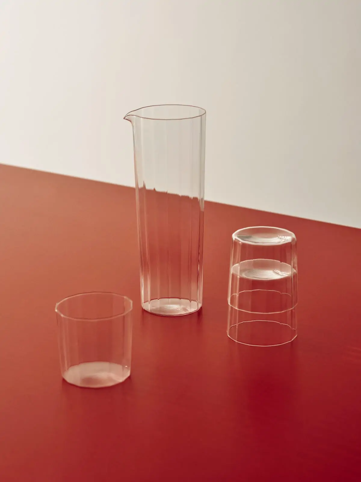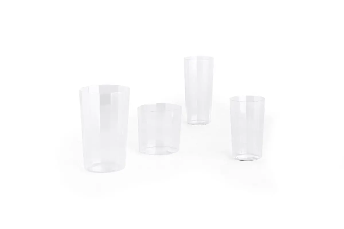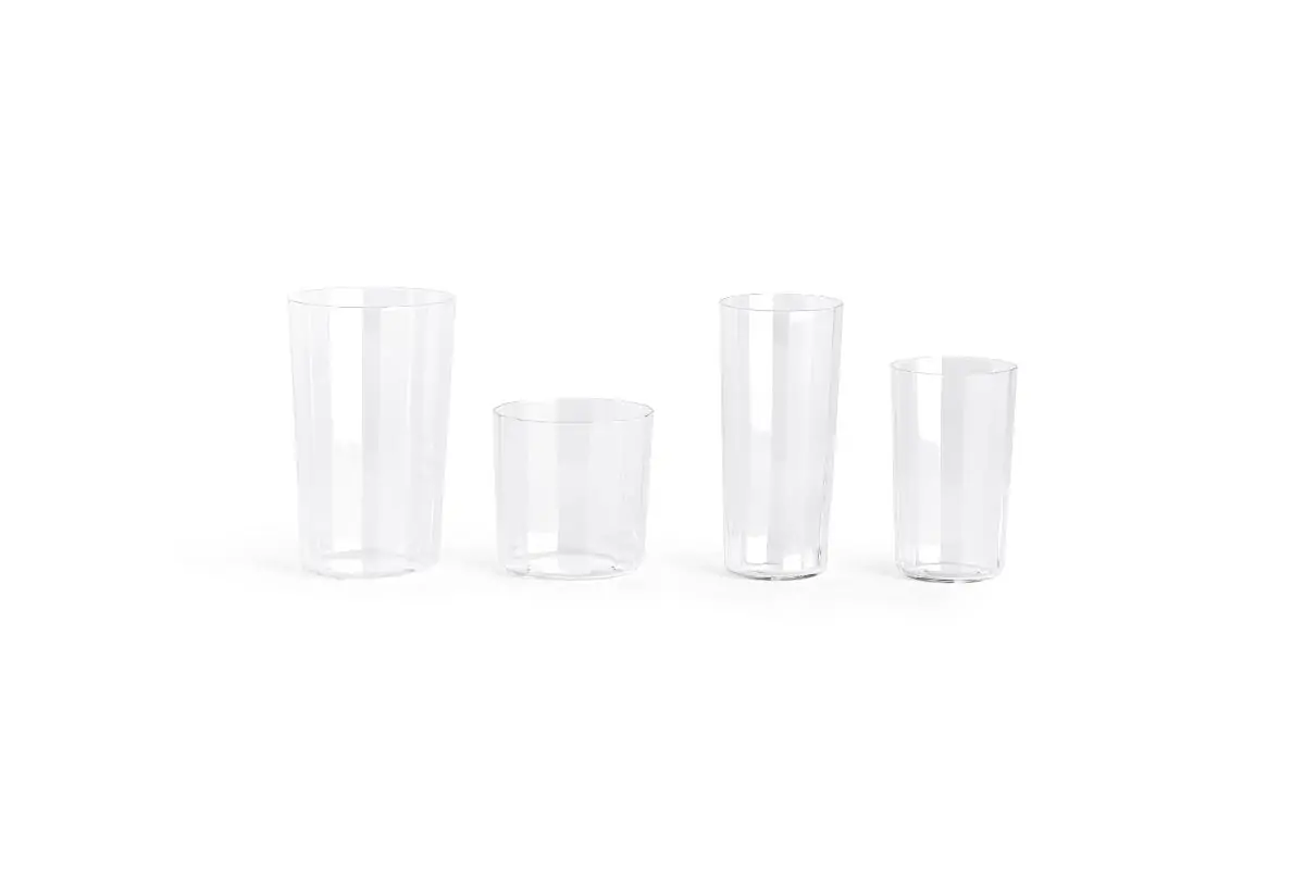 Angle Glass is made in thin glass with faceted sides, creating a simple yet elegant expression that elevates table settings. Available in different sizes and shapes that are easy to stack, the versatile glasses can be used for a variety of beverages for both everyday use and special occasions.