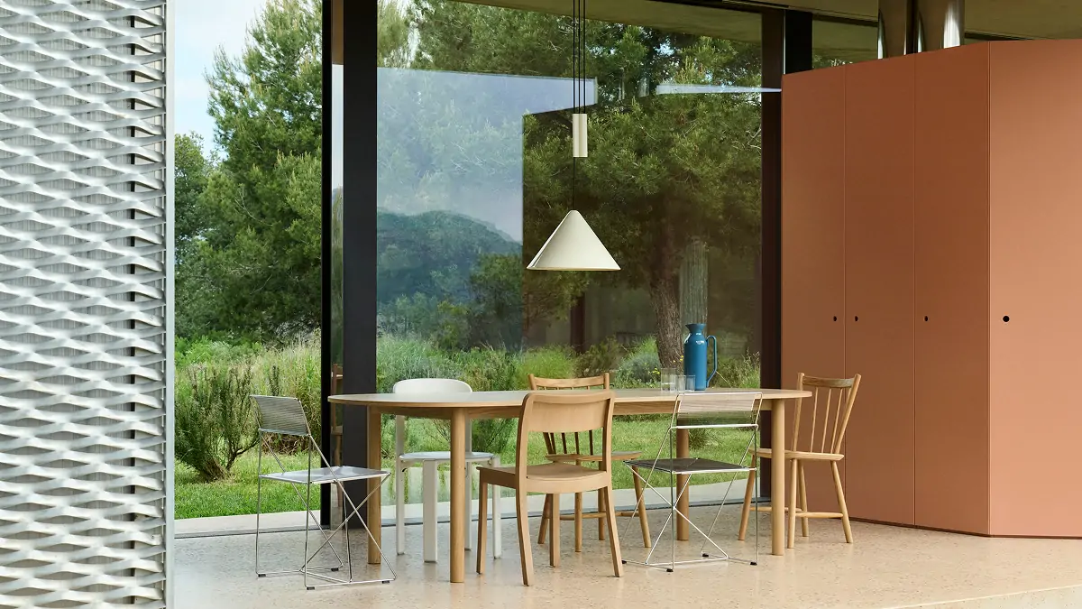 Designed for HAY by John Tree, Annex Table Oblong combines well-balanced proportions with architectural strength, creating a versatile table that seamlessly adapts to any space or situation. The rectangular design comprises a frame and tubular legs made from solid oak or aluminium, sourced from at least 75% recycled post-consumer scrap and extruded in Europe, combined with a variety of tabletop options, including Kvadrat’s Really Textile Tabletop™ made from 70% end-of-life textiles. The table’s considered use of materials and range of sizes make it a practical and inviting choice for most domestic settings – ideal for dining, working, and socialising.