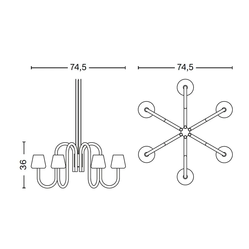 Designed by STUDIO 0405, the Apollo Chandelier is a contemporary take on a classic lamp archetype, sharing basic structural characteristics of the traditional chandelier updated in a sculptural and functional design. Comprising multiple mouth-blown opal glass shades atop curved tubular arms, creating a contrasting expression between the handcrafted, organically shaped shades and the industrial anodised aluminium tubing. The Apollo Chandelier makes an ideal room centrepiece suitable for using in a variety of private and public places. Available in two different sizes, with six or 12 arms.