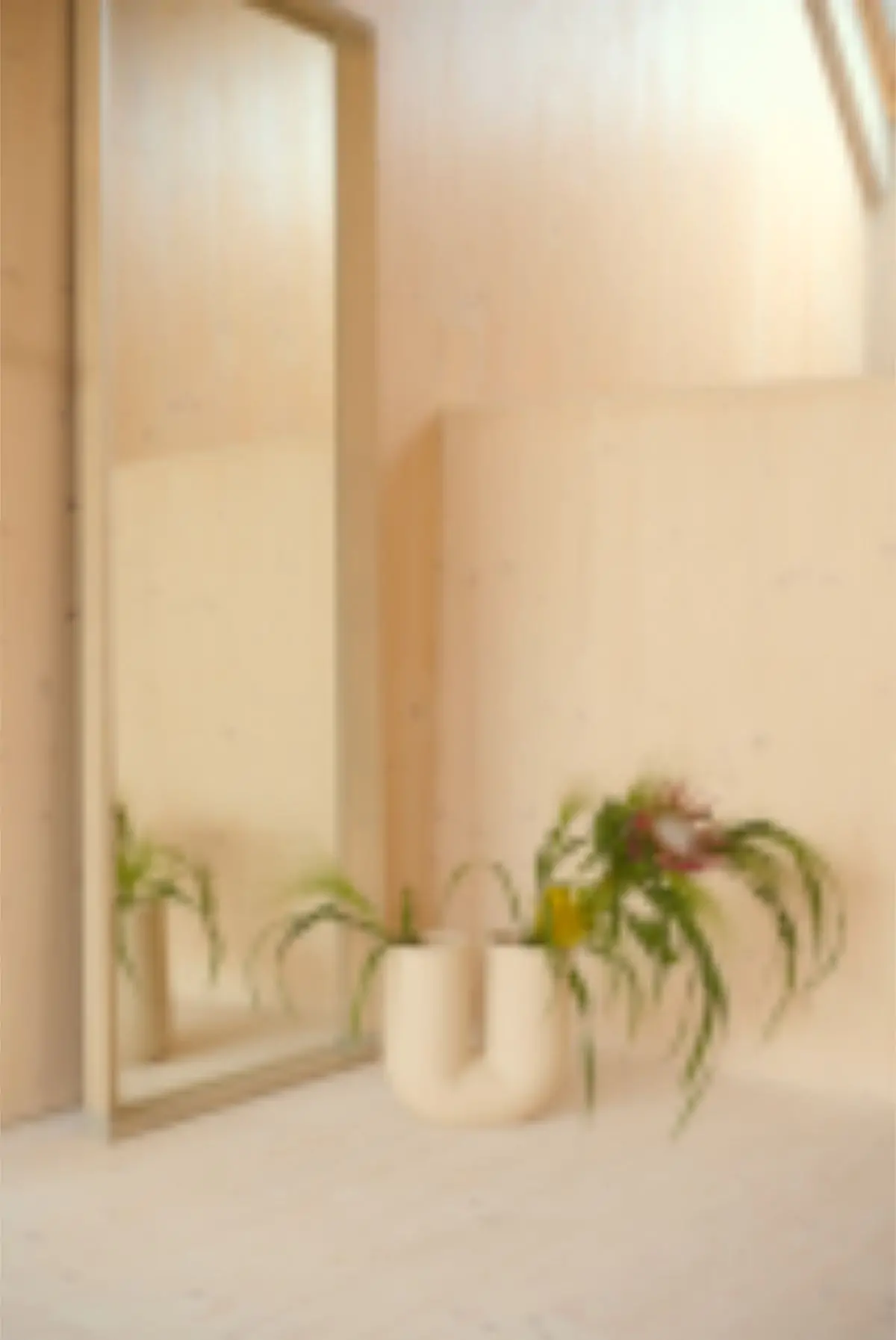 A mirror with a charming window-like allure that embraces the natural grain and texture of spruce wood – variations and visible patterns are a deliberate part of its unique and organic look.