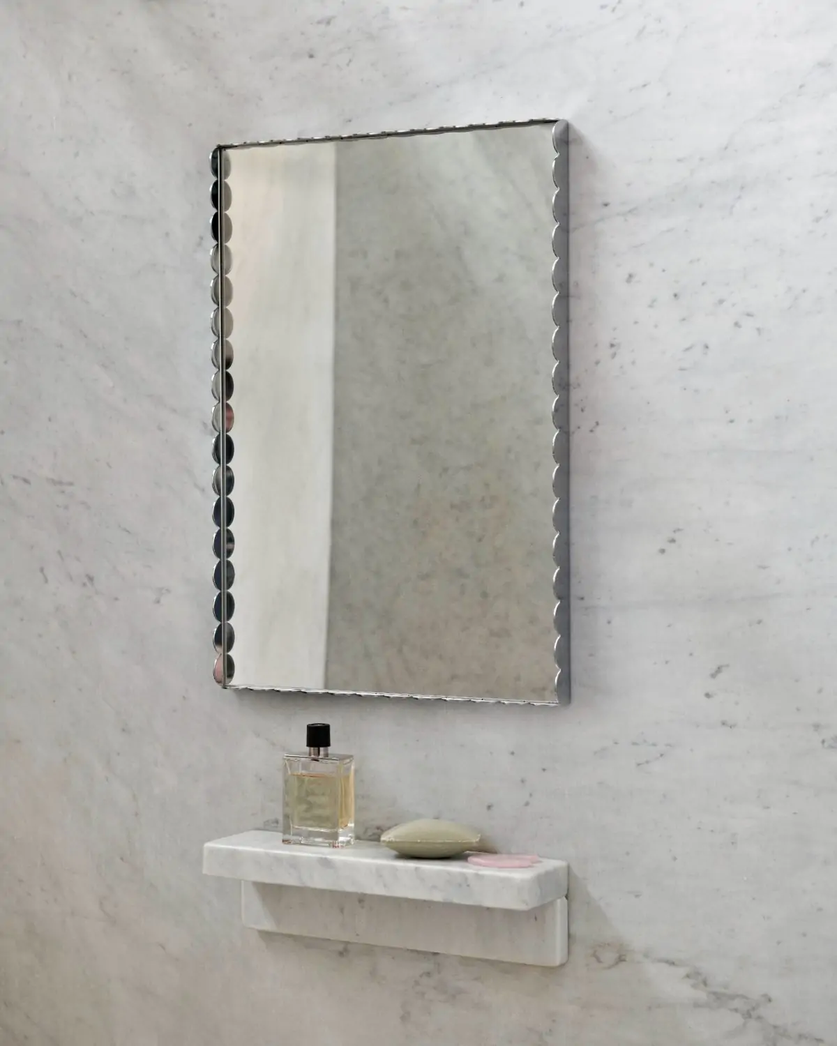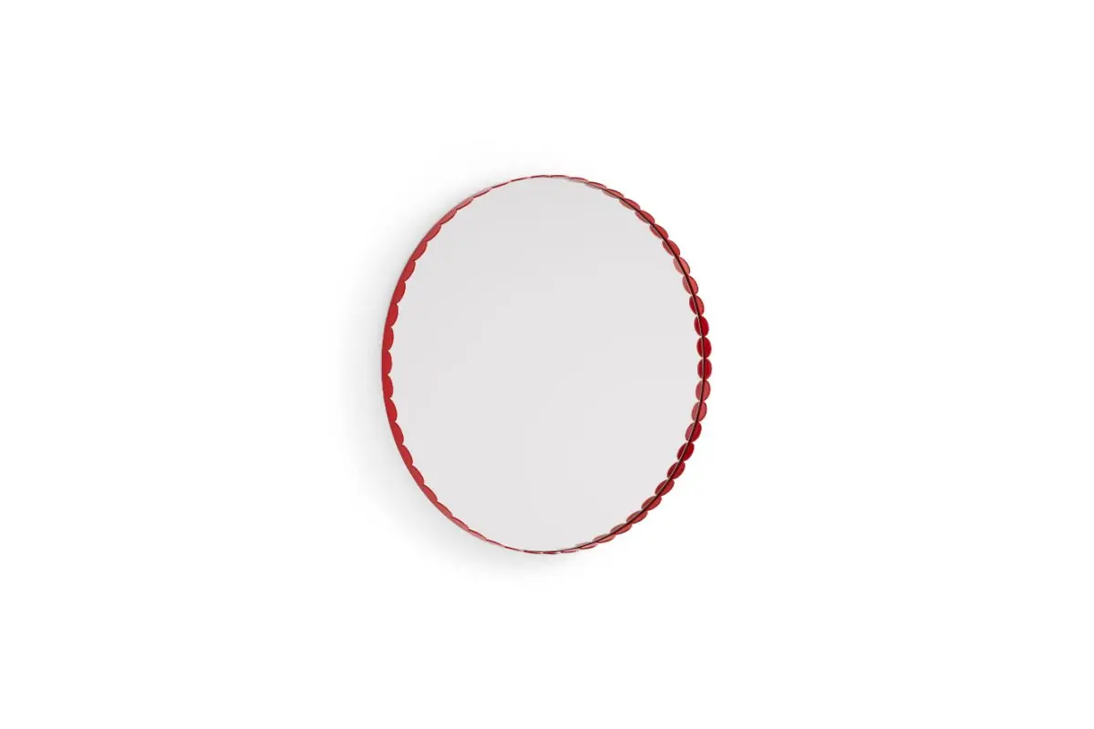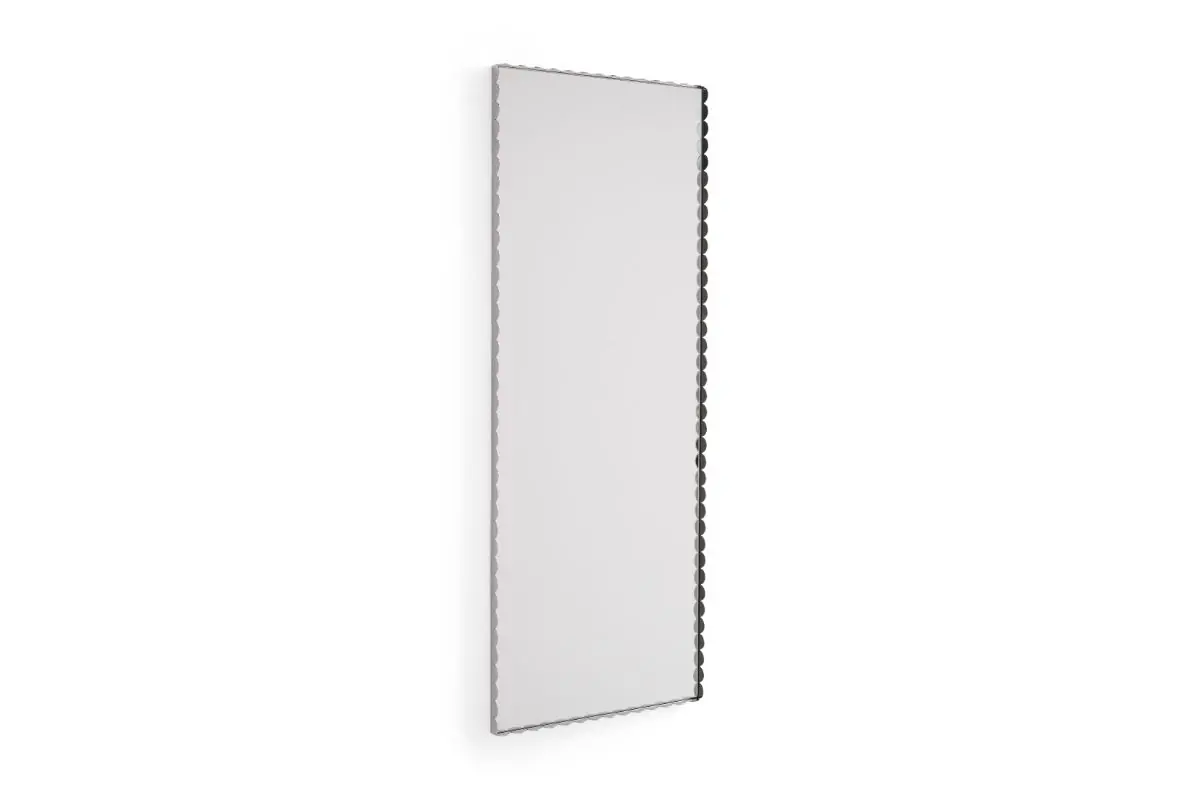 Designed by Belgian duo Muller Van Severen, Arcs Mirror is formed by a unified chain of vertical arcs that encase the mirror to create an elegant, scalloped edge. Made in stainless steel with a mirrored finish and powder coated steel in different colours, its variety of sizes and shapes ranges from a small round mirror to a large rectangular one, making it suitable for all rooms and uses.