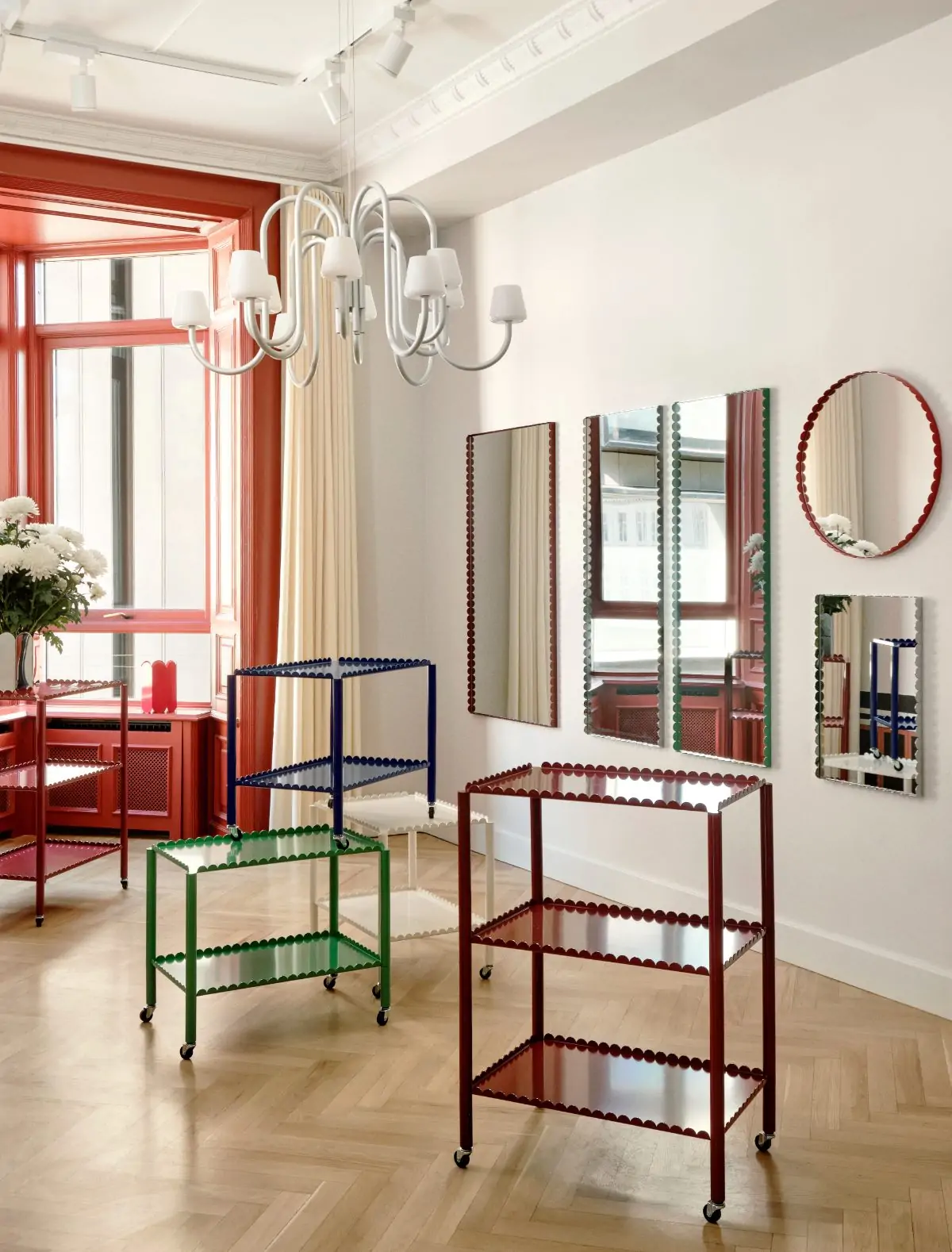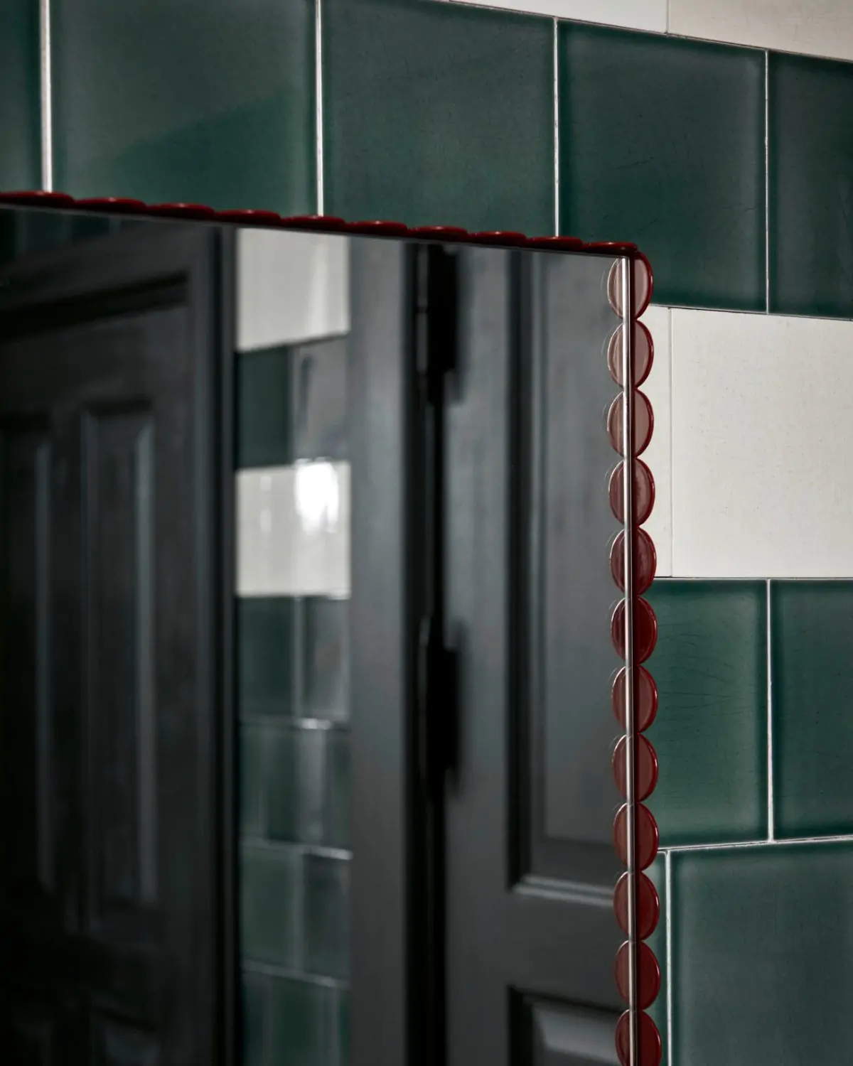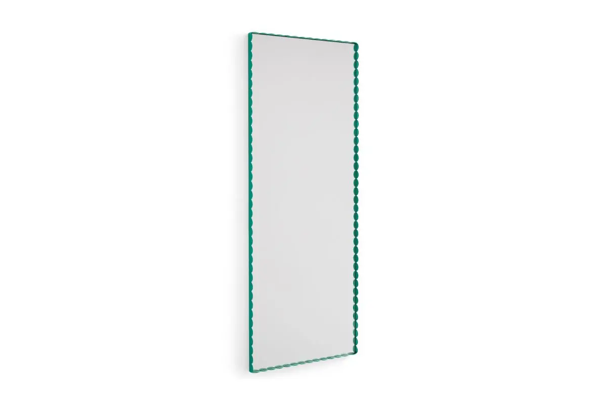 Designed by Belgian duo Muller Van Severen, Arcs Mirror is formed by a unified chain of vertical arcs that encase the mirror to create an elegant, scalloped edge. Made in stainless steel with a mirrored finish and powder coated steel in different colours, its variety of sizes and shapes ranges from a small round mirror to a large rectangular one, making it suitable for all rooms and uses.