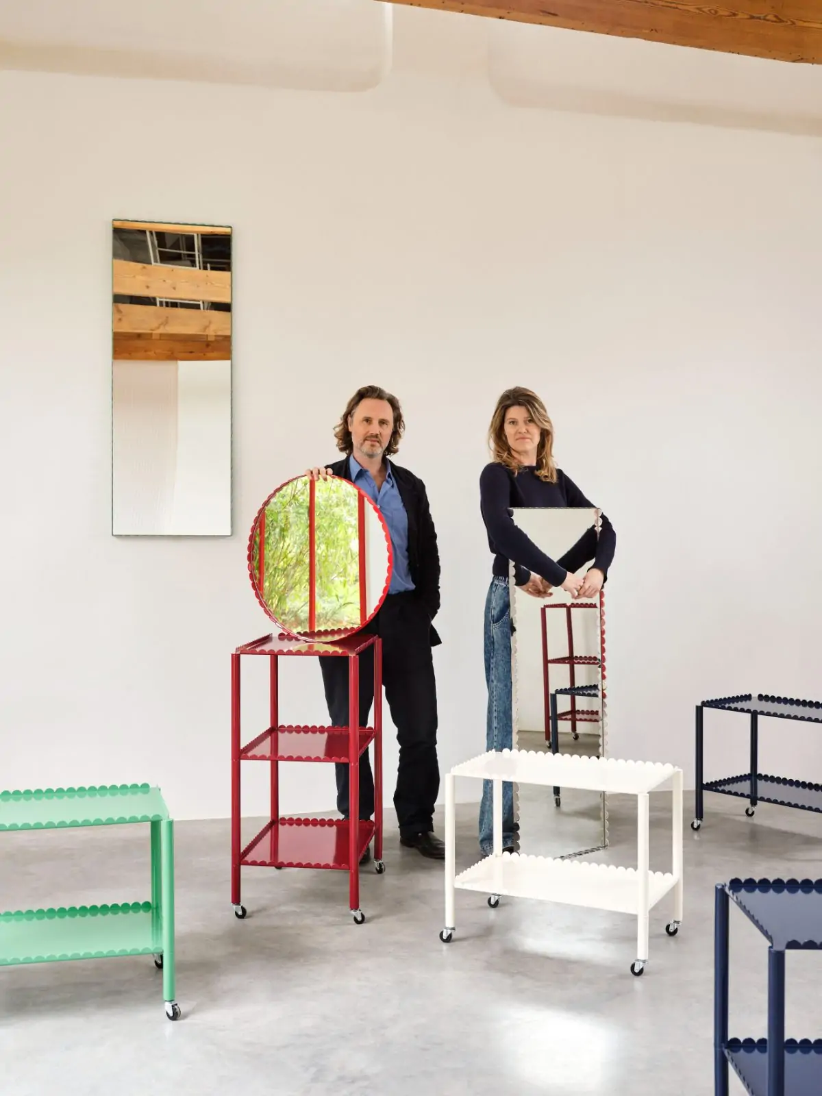 Muller Van Severen was founded in 2011 by Belgian artist duo Fien Muller and Hannes Van Severen. The couple has always been on an inspired quest for sculpturally interesting furniture objects, and their work sits somewhere between design and art, drawing on their passion for architecture and materials. They have won countless awards and collaborated with prestigious museums worldwide (such as Vitra Museum, Centre Pompidou and Musée des Arts Décoratifs Paris) and international galleries (Galerie Kreo, Side Gallery, Valerie Traan Gallery). For HAY, Muller Van Severen has designed the Two-Colour, Ceramic Table, Colour Cabinet, MVS Cutlery, the Arcs Collection, Colour Rack, Colour Hanger and the Perforated Cabinet Collection.