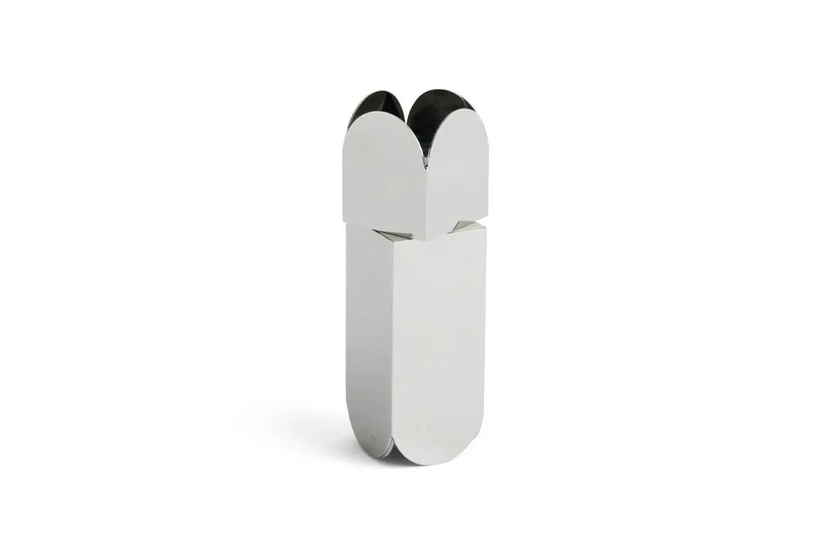 Designed by Belgian duo Muller Van Severen, Arcs Salt & Pepper Grinder are characterised by the unified chain of vertical arcs that encase the adjustable ceramic grinder, creating a functional kitchen essential with an elegant, scalloped silhouette. Made in stainless steel with a mirror finish or high gloss colour options, the grinders add a decorative edge when displayed on kitchen shelves, dining tables and other surfaces around the home, and they come in two sizes.