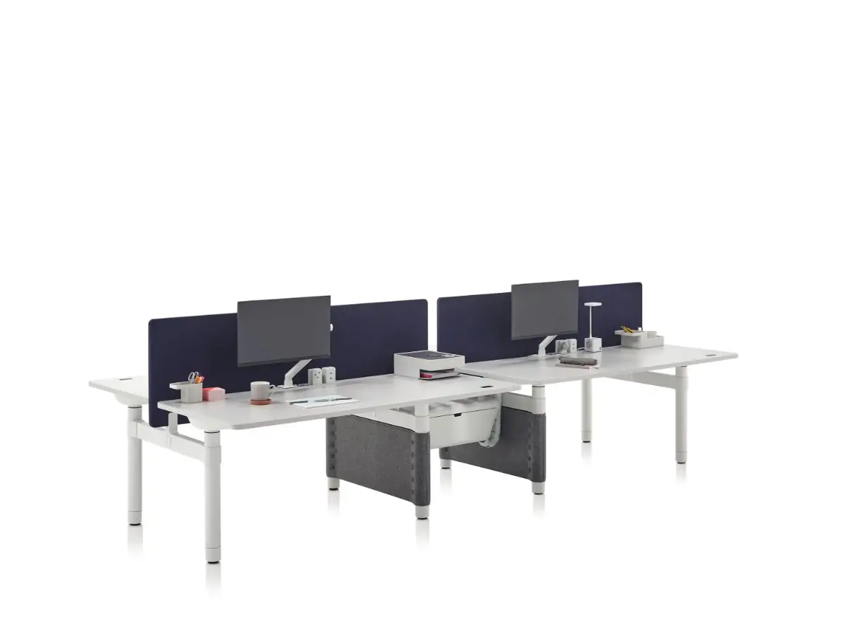Atlas Office Landscape is a work system which brings together height-adjustability and collaborative working in one elegant solution. With a unique “no beam” structure, it frees the workspace from clutter so people can sit or stand in comfort, adapting postures to their activities. Make the space your own by combining desks, screens, tables and storage elements to create places that invite collaboration, focused activity or impromptu meetings.