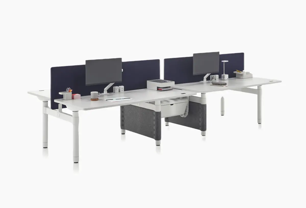 Atlas Office Landscape is a work system which brings together height-adjustability and collaborative working in one elegant solution. With a unique “no beam” structure, it frees the workspace from clutter so people can sit or stand in comfort, adapting postures to their activities. Make the space your own by combining desks, screens, tables and storage elements to create places that invite collaboration, focused activity or impromptu meetings.