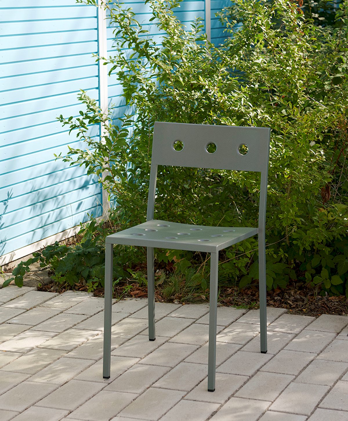 The Balcony Collection from HAY blends streamlined style with all-weather resilience. Crafted from durable powder-coated steel, the distinctive perforated design not only adds visual appeal but also ensures even weight distribution, increased durability, and water drainage for lasting support. From compact patios to spacious terraces, Balcony offers a range of hues and cushions suitable for indoor comfort in outdoor settings. Available with or without armrests, the stackable Balcony Side Chair features a wide, square design softened by a slimmer, rounded back, creating a distinct expression that can be used alone or with other Balcony family products for a cohesive look.