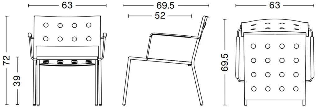 The Balcony Collection from HAY blends streamlined style with all-weather resilience. Crafted from durable powder-coated steel, the distinctive perforated design not only adds visual appeal but also ensures even weight distribution, increased durability, and water drainage for lasting support. From compact patios to spacious terraces, Balcony offers a range of hues and cushions suitable for indoor comfort in outdoor settings. Available with or without armrests, the stackable Balcony Lounge Chair is a low and comfortable seat. Featuring a wide, square design softened by the rounded back, this chair’s design creates a distinct expression that can be used alone or with other Balcony family products for a cohesive look.