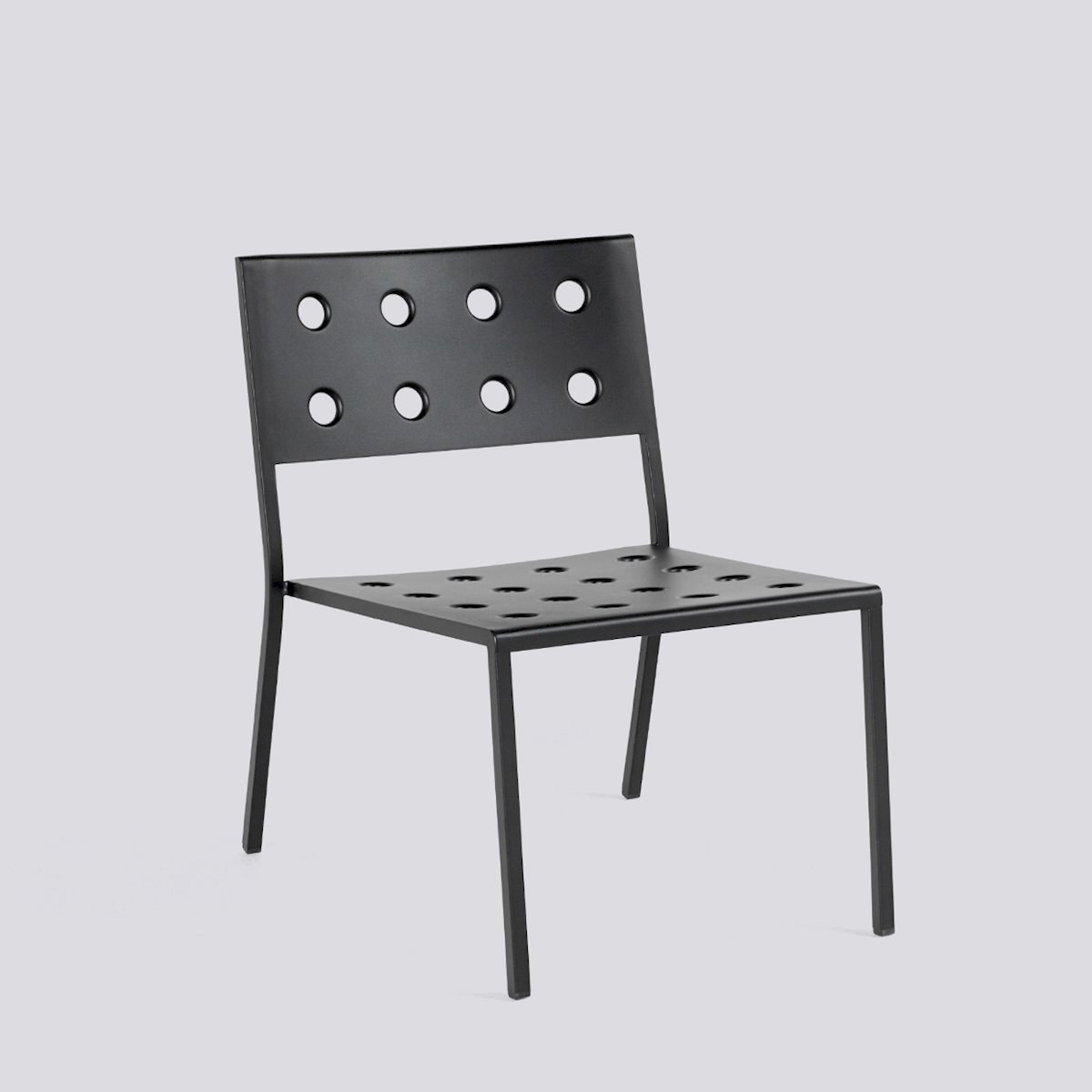 The Balcony Collection from HAY blends streamlined style with all-weather resilience. Crafted from durable powder-coated steel, the distinctive perforated design not only adds visual appeal but also ensures even weight distribution, increased durability, and water drainage for lasting support. From compact patios to spacious terraces, Balcony offers a range of hues and cushions suitable for indoor comfort in outdoor settings. Available with or without armrests, the stackable Balcony Lounge Chair is a low and comfortable seat. Featuring a wide, square design softened by the rounded back, this chair’s design creates a distinct expression that can be used alone or with other Balcony family products for a cohesive look.