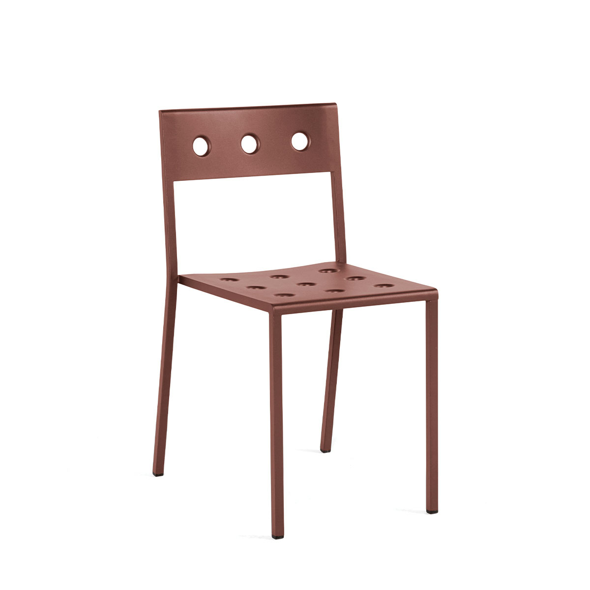 The Balcony Collection from HAY blends streamlined style with all-weather resilience. Crafted from durable powder-coated steel, the distinctive perforated design not only adds visual appeal but also ensures even weight distribution, increased durability, and water drainage for lasting support. From compact patios to spacious terraces, Balcony offers a range of hues and cushions suitable for indoor comfort in outdoor settings. Available with or without armrests, the stackable Balcony Side Chair features a wide, square design softened by a slimmer, rounded back, creating a distinct expression that can be used alone or with other Balcony family products for a cohesive look.