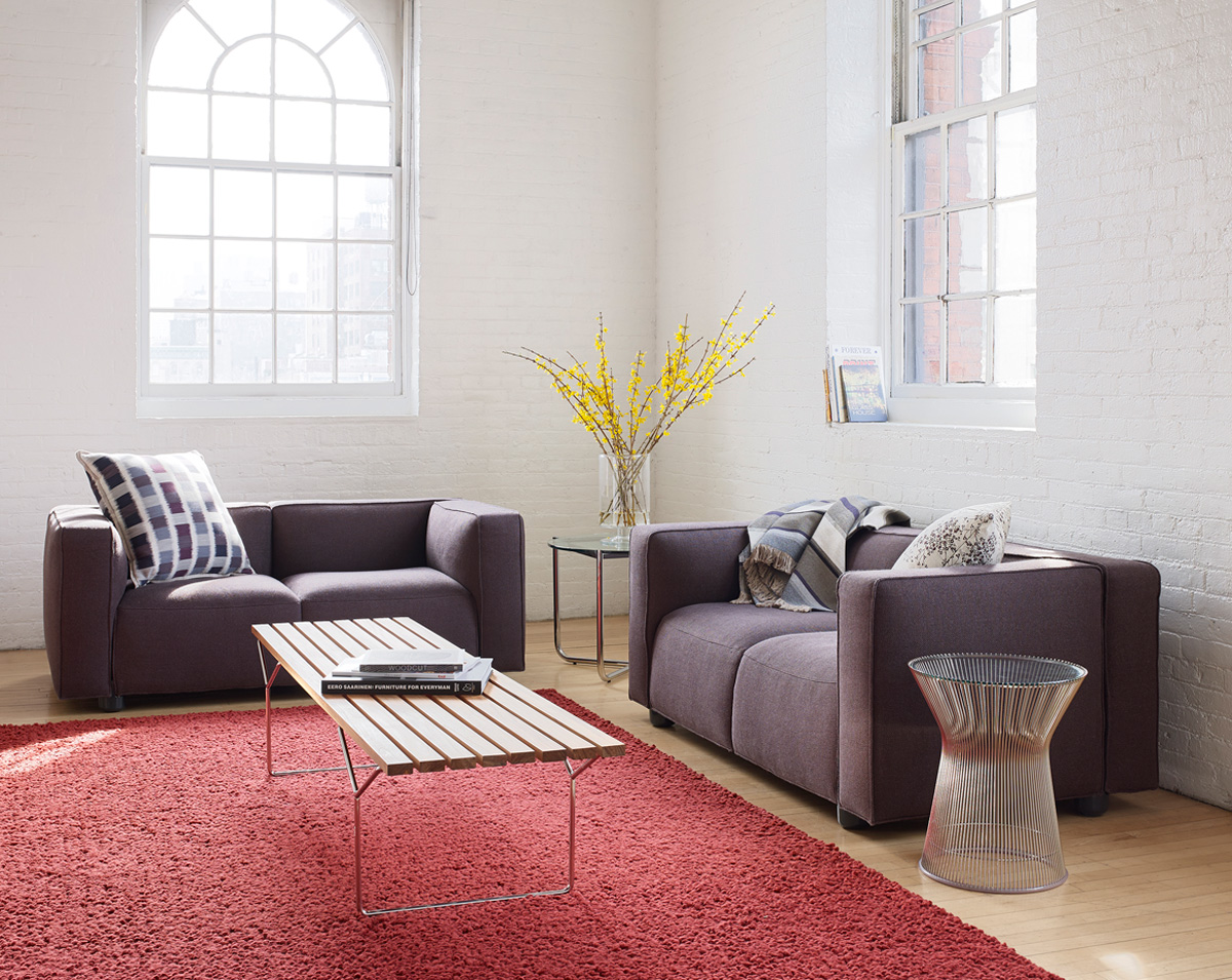 The chairs’ t-shaped legs are both a source of structure and support, fitting between the joints of the cushions to serve the dual purpose of foot and connector. The result is seamless design that does away with the frame, creating the appearance of a wholly integrated piece of furniture composed of several different components. For this reason, Osgerby contends, “The foot is really the icon of the sofa. It fits between each one of the arms and the seats, which are the architectural building blocks of the sofa.”