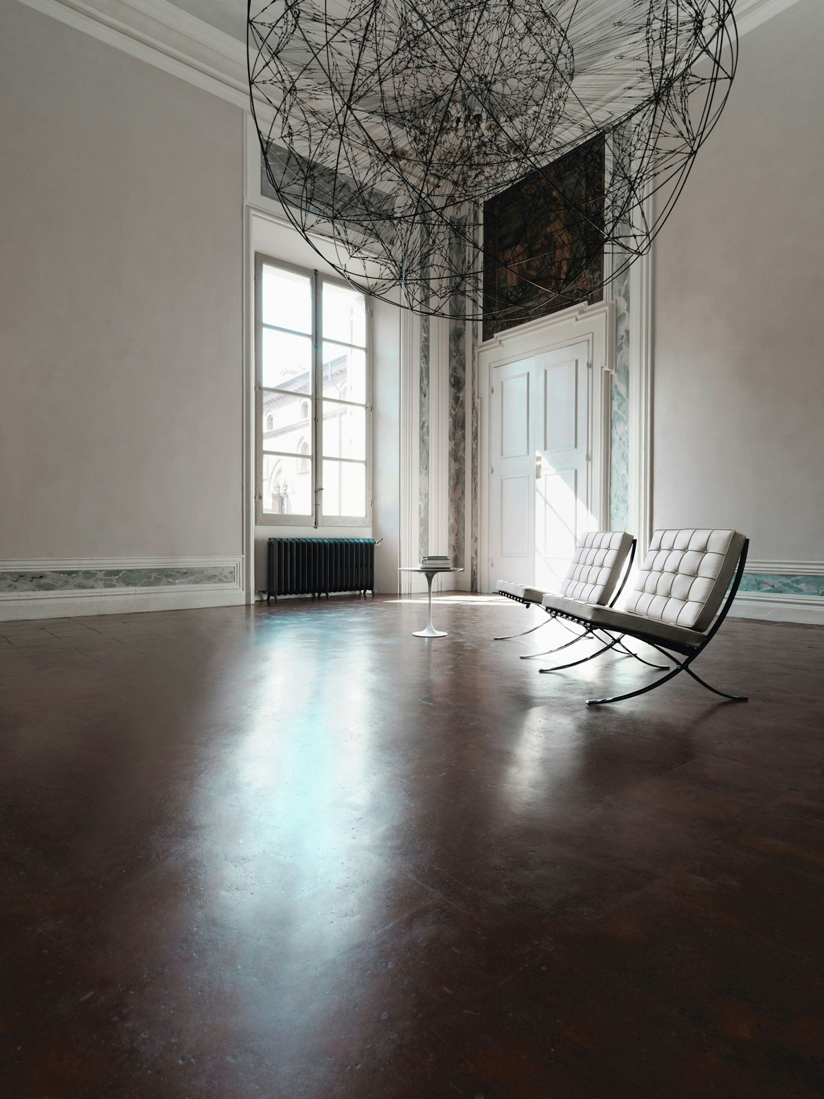 Through masterful proportioning and planning, Mies created a rhythmic and entirely unprecedented space, which elevated industrial-age materials to a level of grace never before achieved. Inside, Mies included chairs and stools conceived as a resting place for the King and Queen of Spain. Determined to create a chair worthy of royalty, Mies is thought to have based the designs, with their signature criss-cross frames, on the campaign chairs of Ancient Rome. Mies: “I feel that it must be possible to harmonise the old and new in our civilisation.”