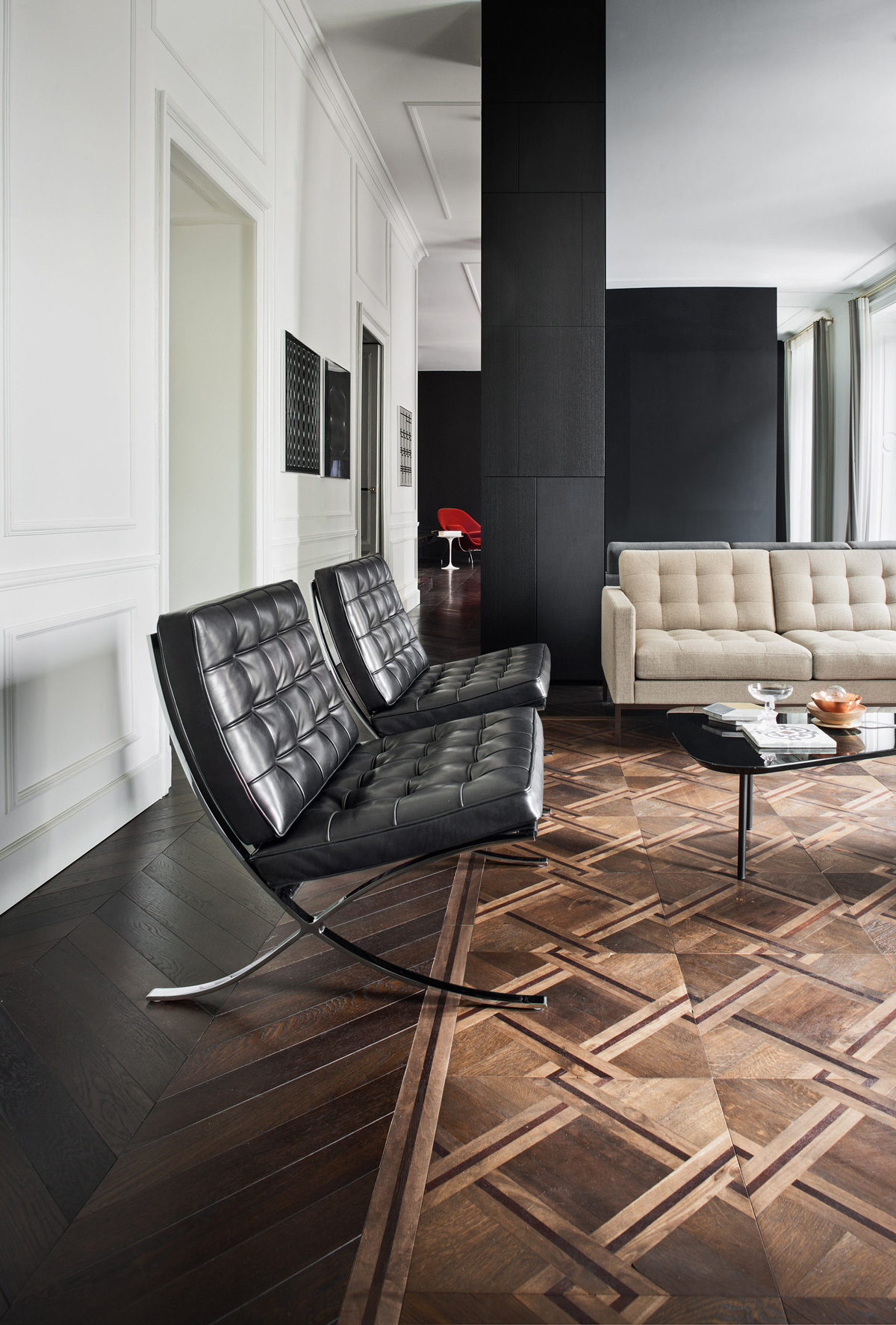 The Barcelona Chair from Knoll is a tribute to traditional craftsmanship and meticulous attention to detail. Designed by Ludwig Mies van der Rohe in 1929, this iconic chair is one of the most celebrated designs of the 20th century. It features a hand-buffed bent stainless steel, chrome, or ultra-matte onyx frame that elegantly supports a pitched seat crafted from button-tufted leather or fabric. The seat’s cushioning is available in a standard highly resilient urethane foam or a relaxed soft density, fire retardant urethane foam blanketed with a non-woven fabric topper.