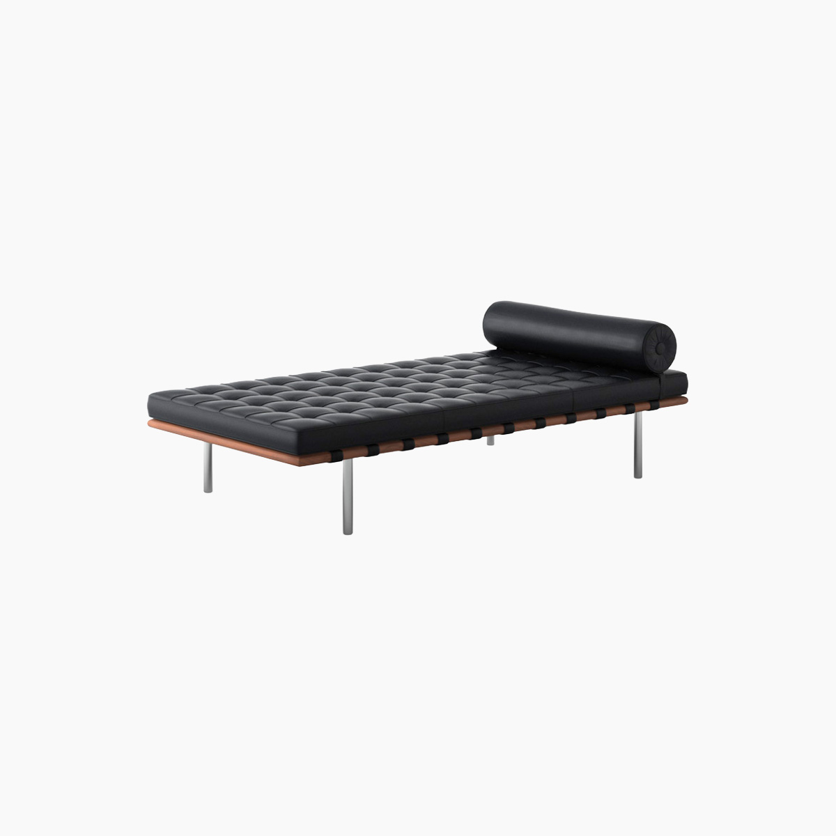 With its metal legs, wood frame, and seat made from individual upholstery squares carefully welted together, each Barcelona Couch is a tribute to the marriage of modern design and exceptional craftsmanship. It is available with standard or relaxed cushions, upholstered in leather or fabric. The legs are offered in hand-buffed polished chrome, stainless steel, or ultra-matte onyx.