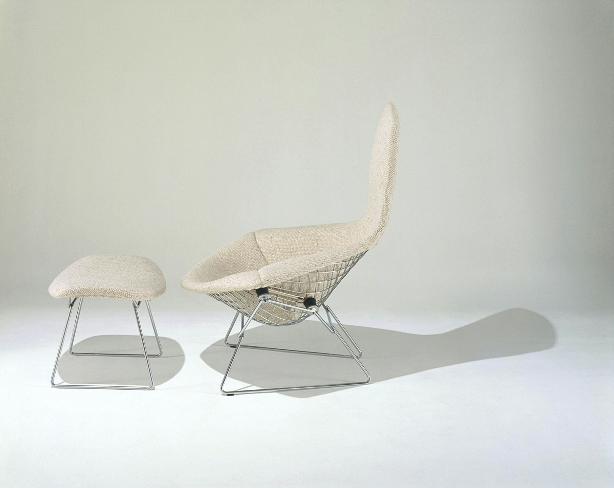 The Bird Chair is an astounding study in space, form, and function by one of the master sculptors of the last century. Like Saarinen and Mies, Bertoia found sublime grace in an industrial material, elevating it beyond its normal utility into a work of art. Harry Bertoia’s wire chairs are among the most recognized achievements of mid-century modern design and a proud part of the Knoll heritage.