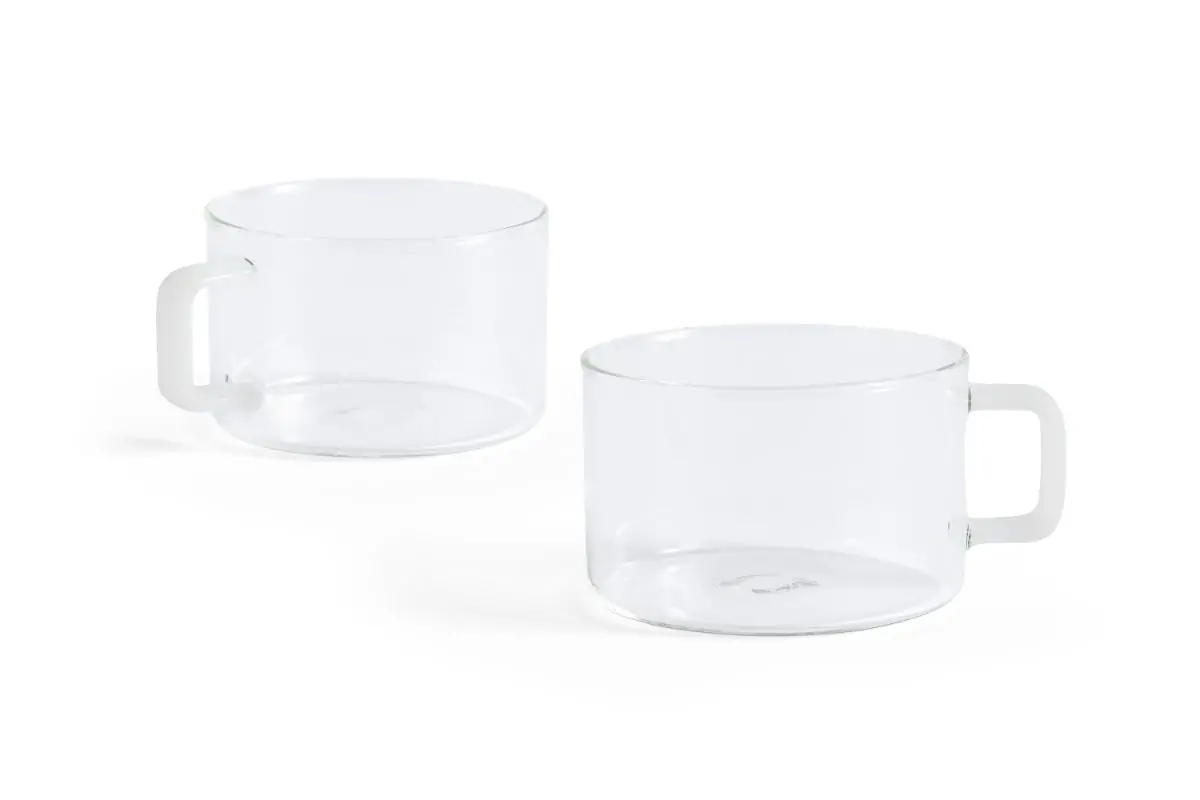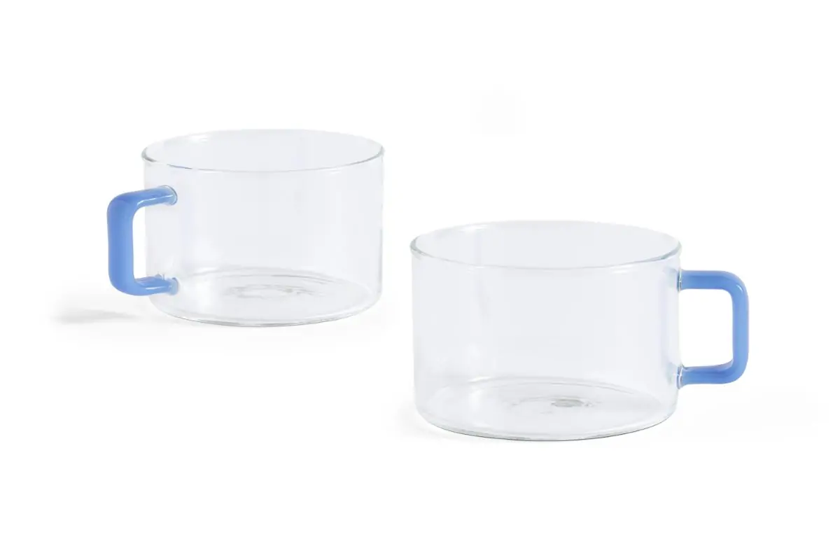 Crafted in durable, heat-resistant borosilicate glass, the Brew Cup has a functional design with a playful twist. Featuring a simple shape with contrasting handle, it is an elegant upgrade to your everyday kitchen essentials. It comes in a pack of two different designs.