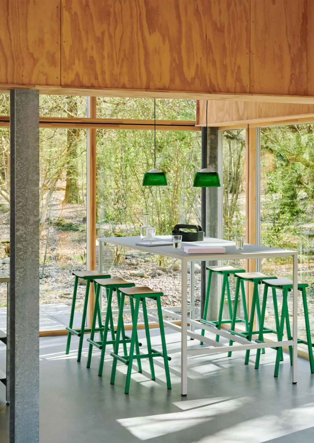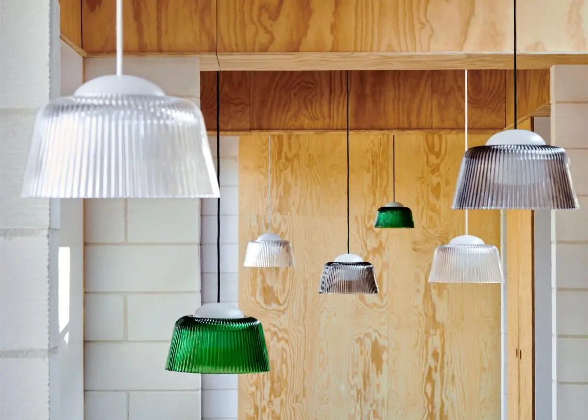 Designed for HAY by Rui Pereira & Ryosuke Fukusada, Brim is an ambient pendant with a coloured pressed glass shade, inspired by classic glass pendants from past times. The familiar light typology has been updated in new materials and construction to optimise the function whilst retaining the pendant’s timeless aesthetics. The internal sphere conceals the bulbs, which is surrounded by a distinctive fluted glass shade that enhances the light diffusion. Available in a clear, smoked, and green glass variants, Brim’s compact size makes it ideal for hanging in clusters, as well as on its own in smaller spaces such as in hallways or over counters.