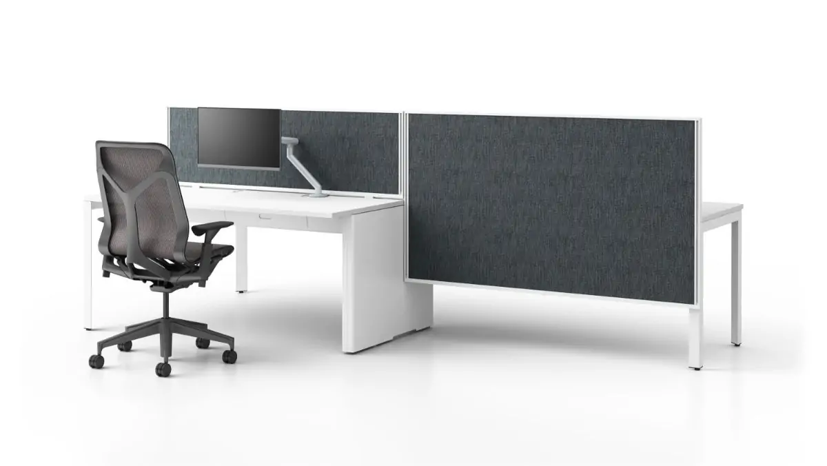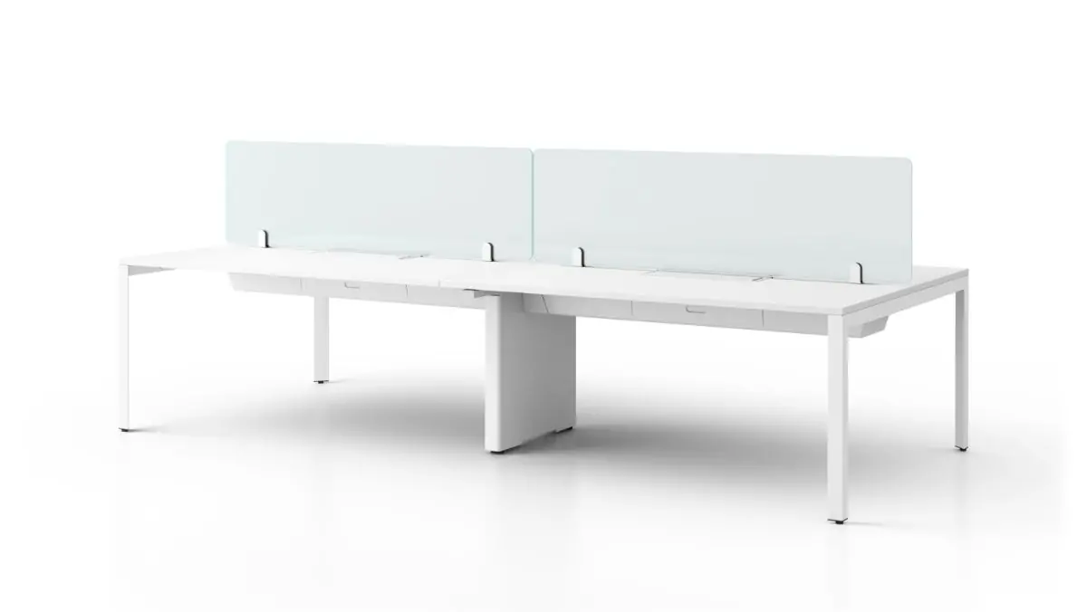 Specify Byne System with a number of different screen types, or go screen-less for a collaborative setting. Choose from desk-up screens, suspended screens, lateral screens, toolbar-mounted screens and modesty screens in fabric, glass or acrylic. Framed or frameless screens, plus pinnable or tackable surfaces, are also available.