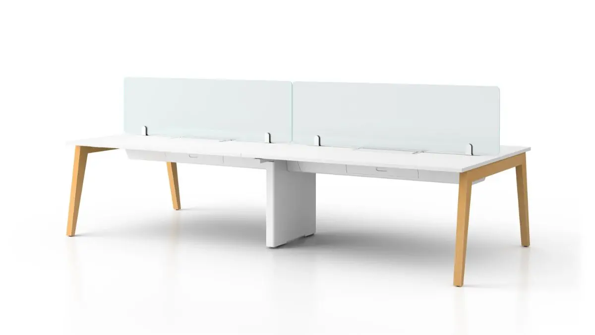 Specify Byne System with a number of different screen types, or go screen-less for a collaborative setting. Choose from desk-up screens, suspended screens, lateral screens, toolbar-mounted screens and modesty screens in fabric, glass or acrylic. Framed or frameless screens, plus pinnable or tackable surfaces, are also available.