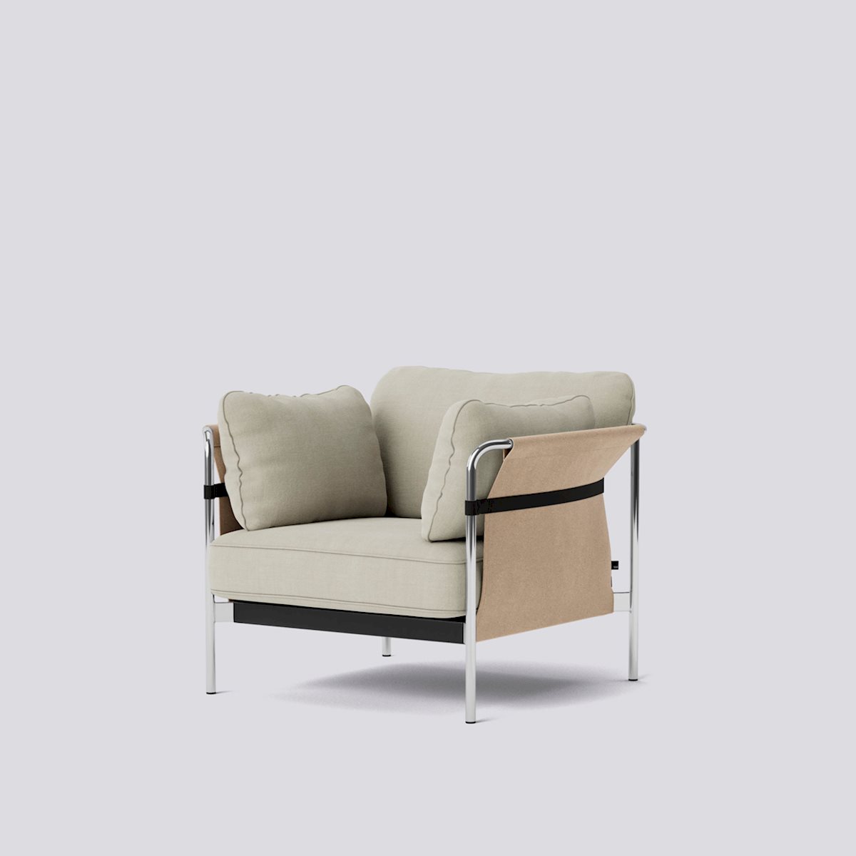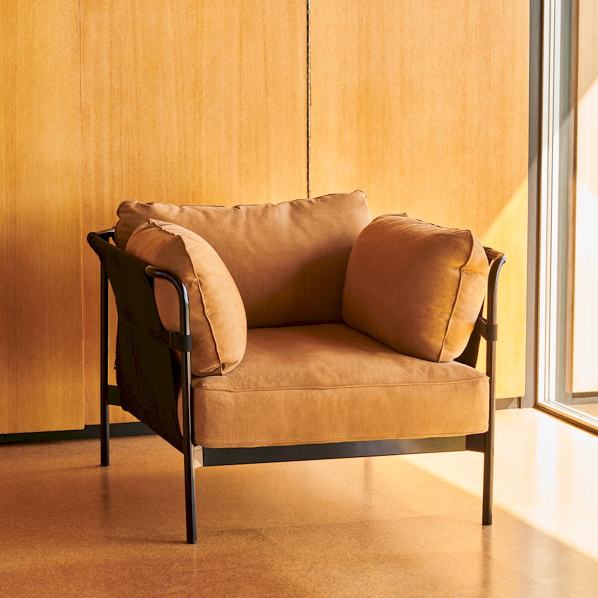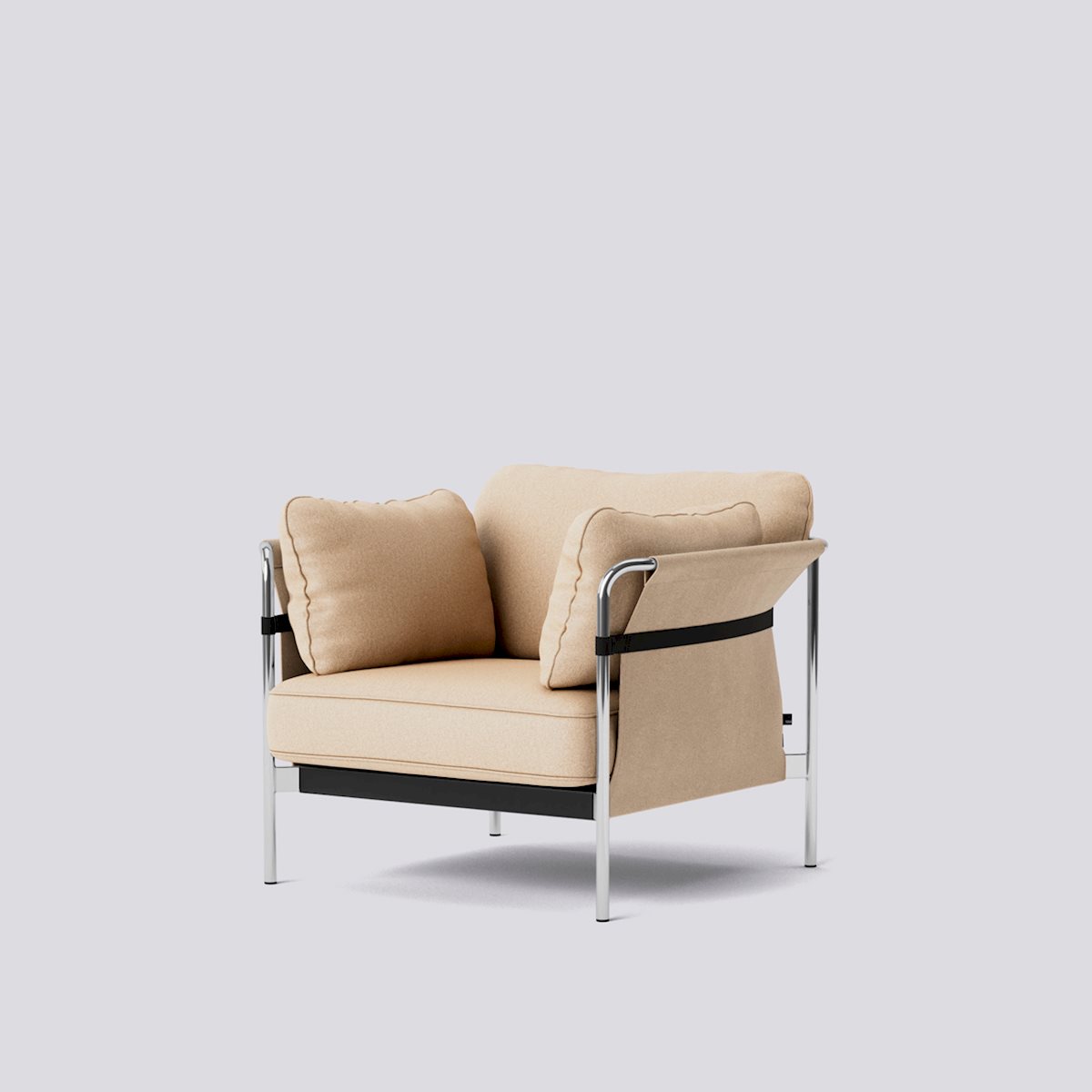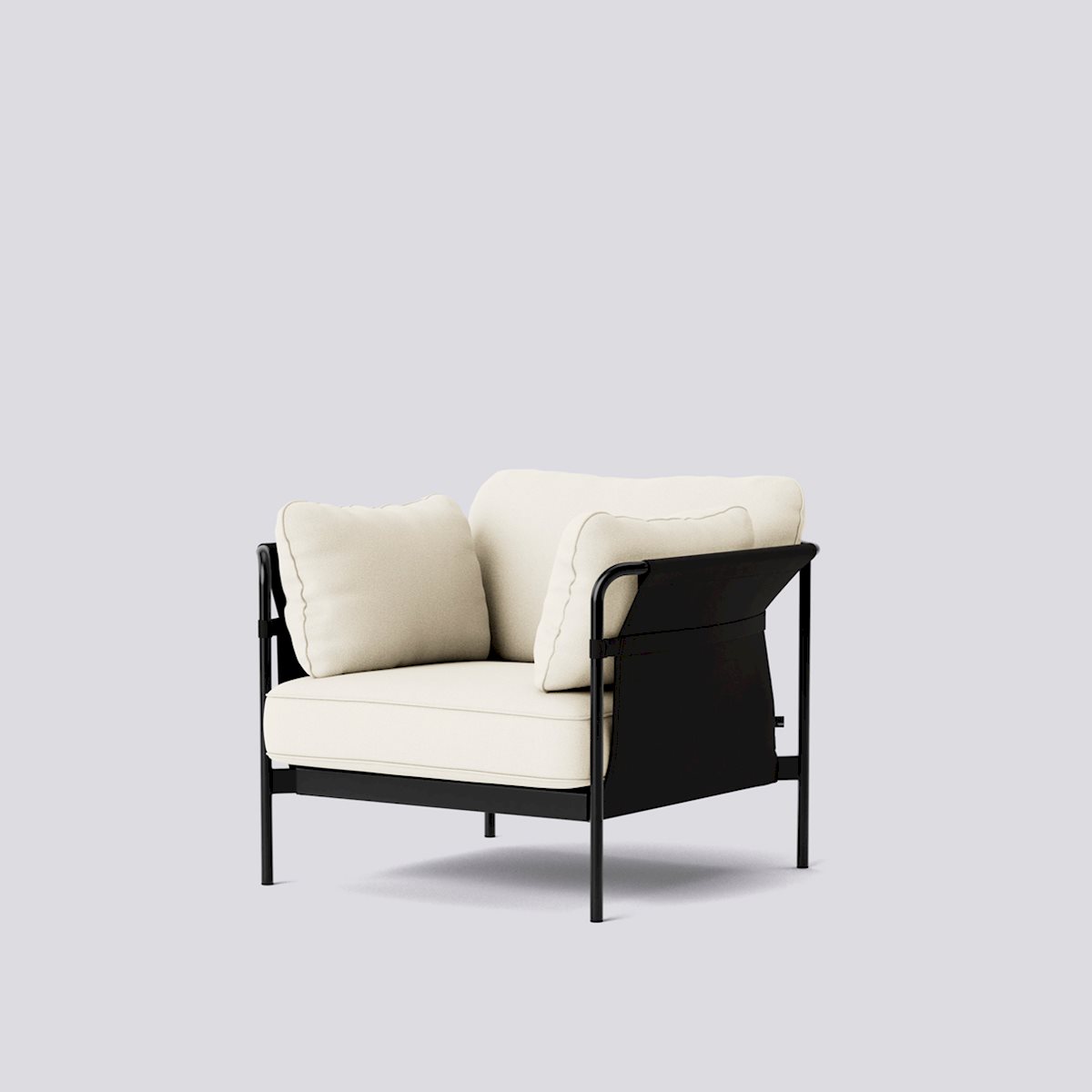 The Can Lounge Chair from HAY is designed to blend simplicity and comfort. It’s distinguished by an elegantly formed tubular steel frame available in a range of finishes, which supports an embracing hammock-like canvas sling that, in turn, cradles plush seat cushions. Shipped flat and easy to assemble, it makes stylish seating uncomplicated.