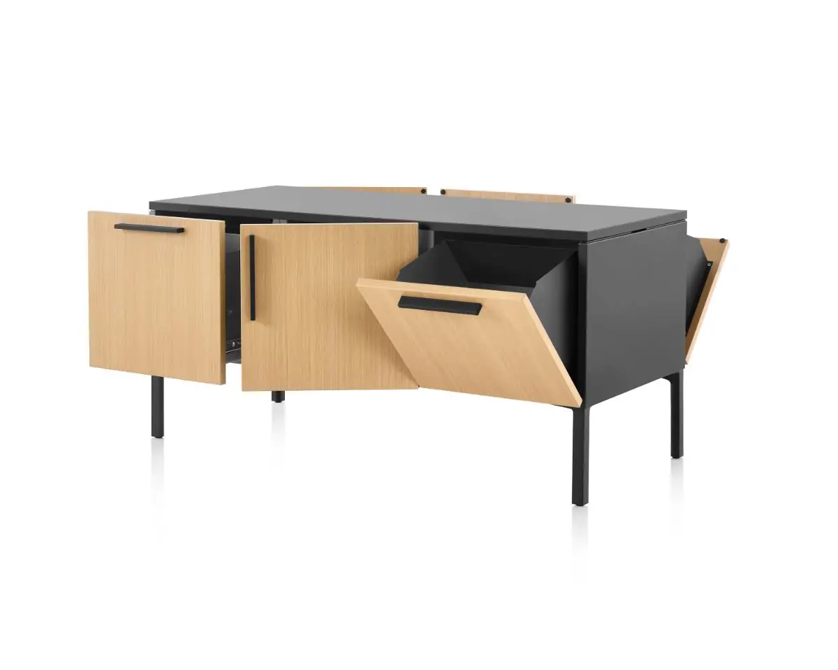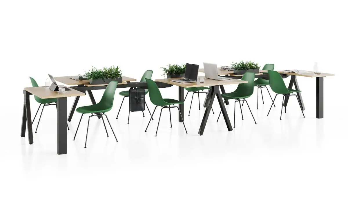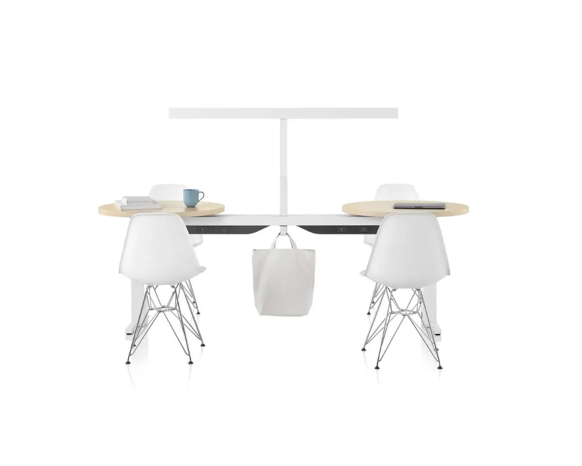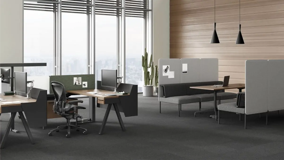 When workspaces are designed efficiently with people in mind, you feel less cramped and distracted. Move inserts into and out of the open-frame screens to dial in the privacy, stow away personal items in purposeful storage, and use T-shaped lights to imply boundaries.